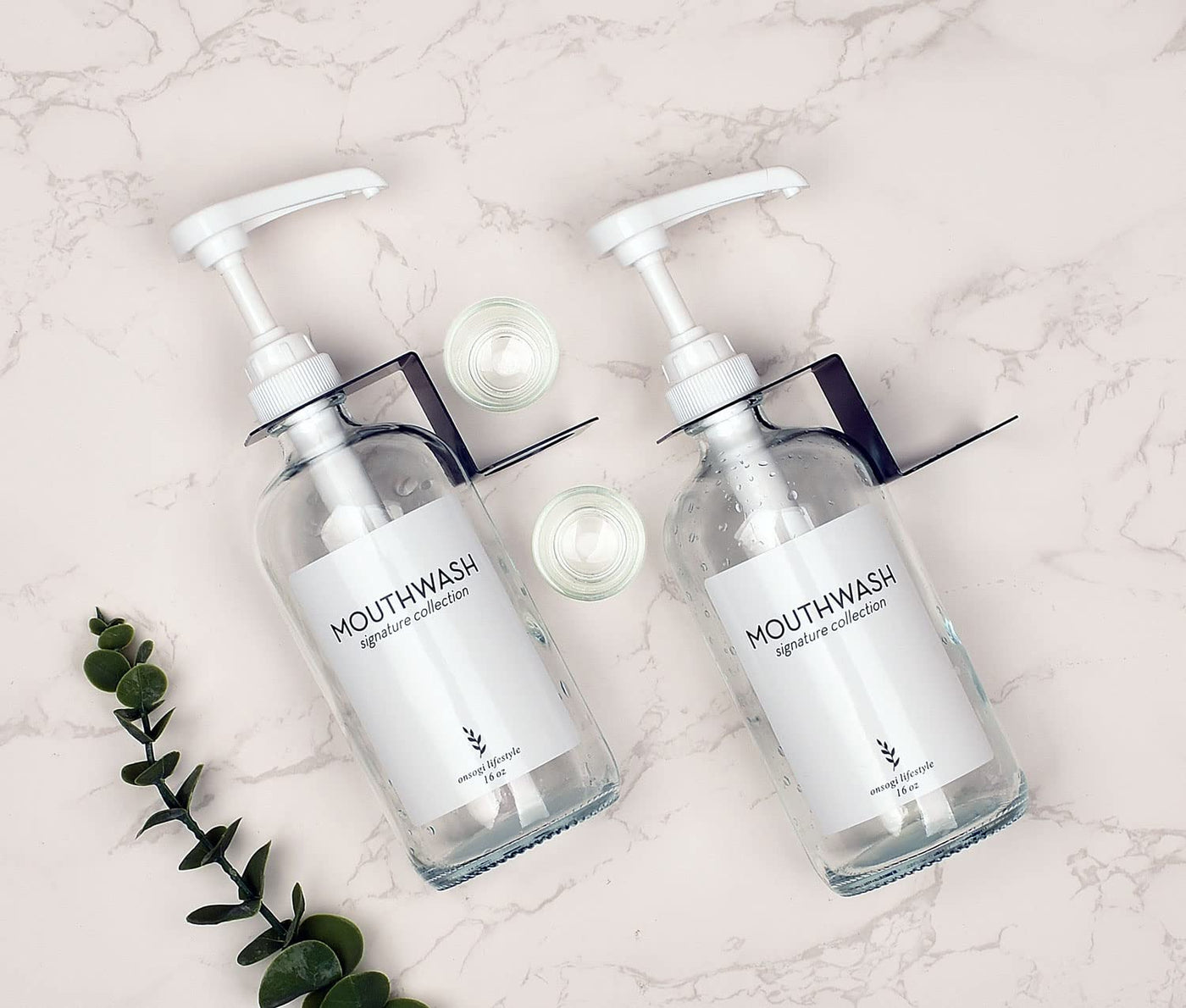 - Q: What kind of stickers come with the dispensers? A: The set includes waterproof stickers labeled 'MOUTHWASH' for easy identification, although these stickers are not dishwasher safe.