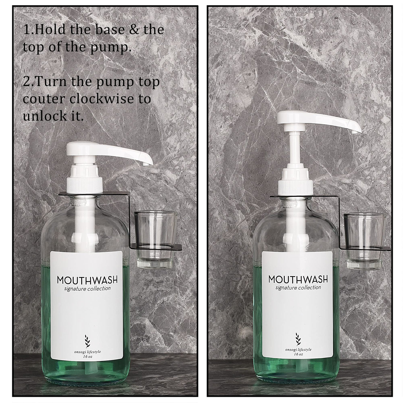 Onsogi Glass Mouthwash Dispenser With Cups Holders And Pumps, 16 Oz Rustic Boho Mouthwash Dispenser For Bathroom Farmhouse Decor
