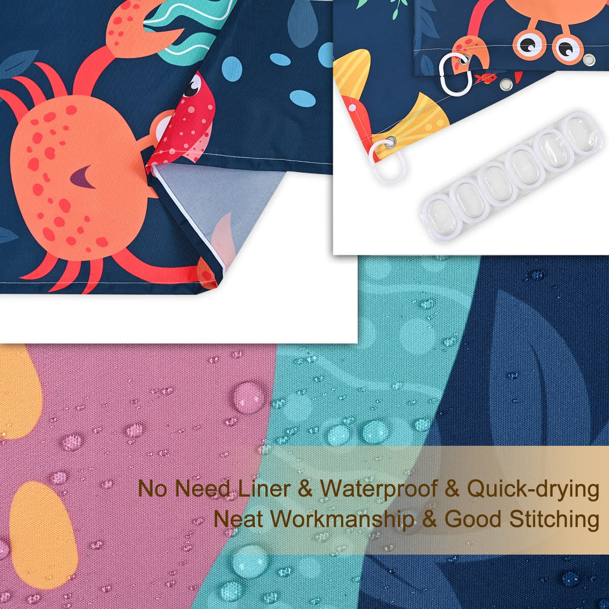 Rosielily Kids Shower Curtain For Bathroom,Cartoon Sea Ocean Animal Shower Curtain With Dolphin, Ocean Fish Shower Curtains Set