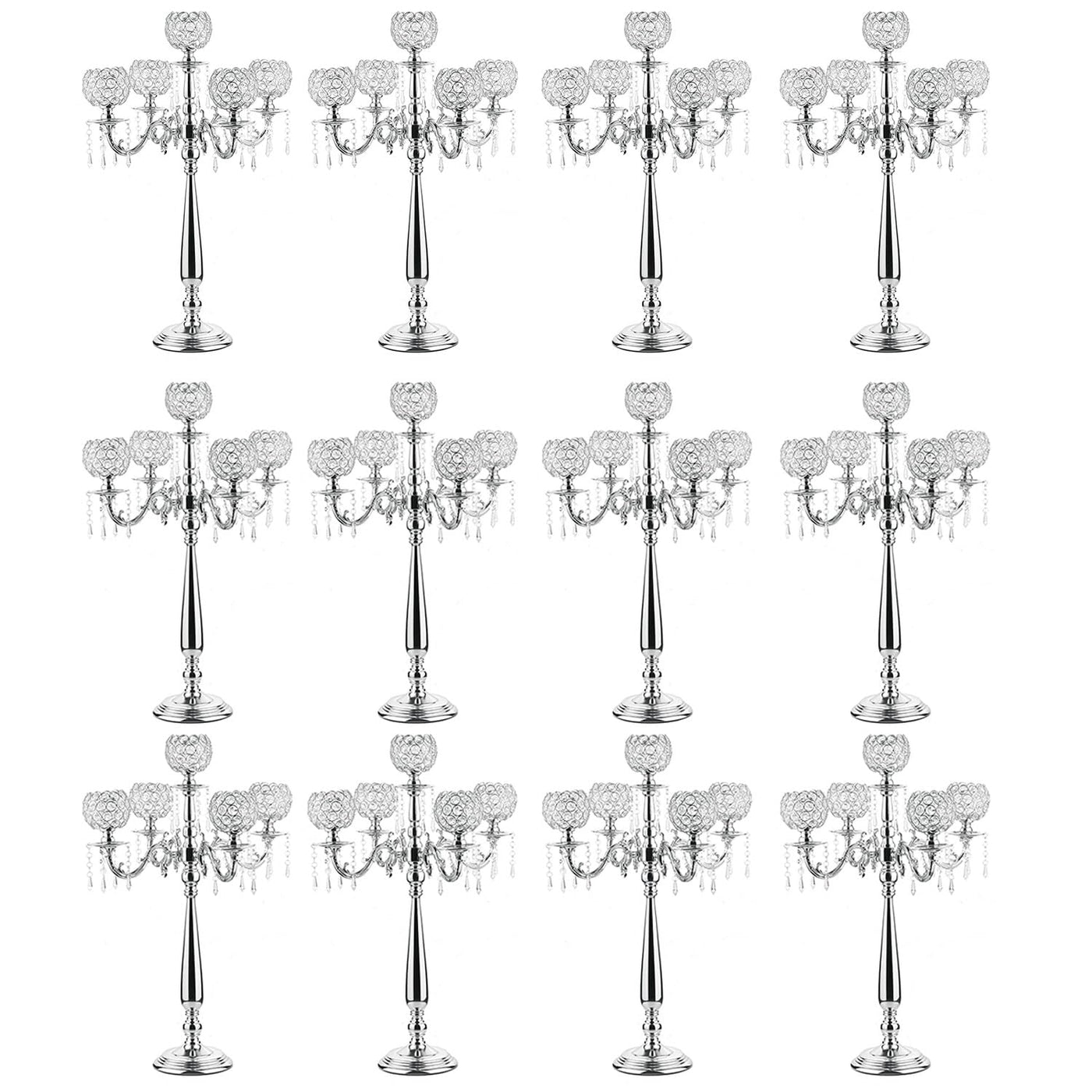 Silver 5 Arm Candelabra Centerpieces for Tables,Crystal Candle Holder Hollow Engraved Party Table Centerpiece for Weddings,Chris