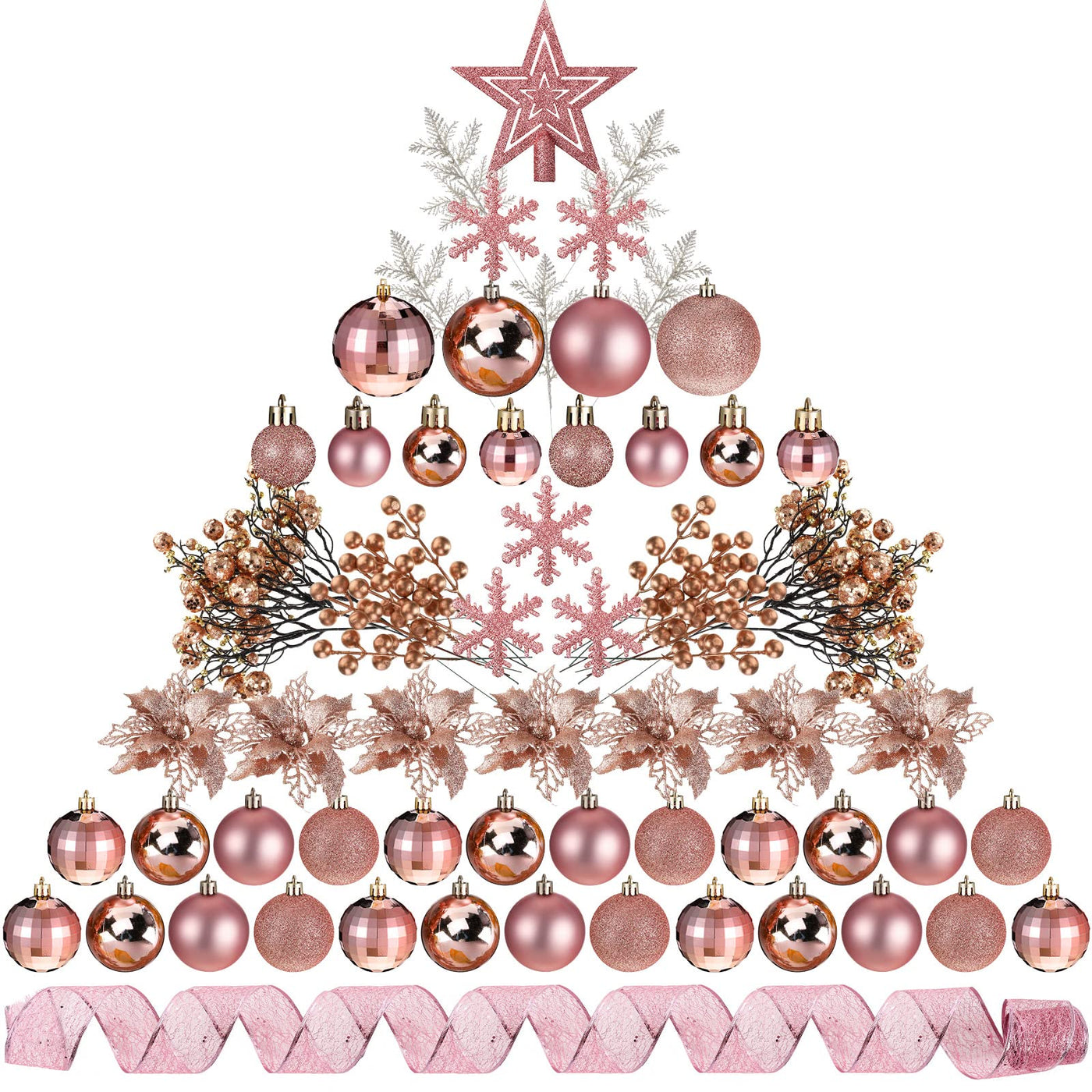 Sratte 94 Pcs Christmas Tree Decorations Set, Christmas Tree Ball Ornaments Glitter Poinsettia Flowers Decorations Glitter Berri
