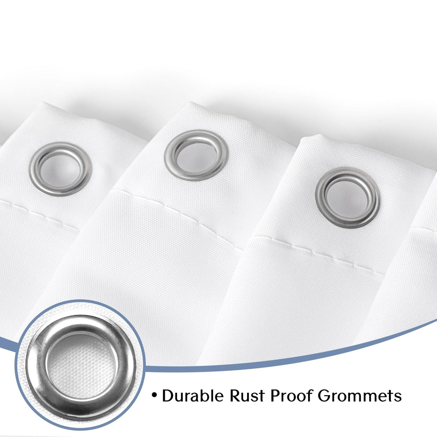 - Q: What type of grommets does the shower curtain have? A: The shower curtain features rust-proof metal grommets for added durability.