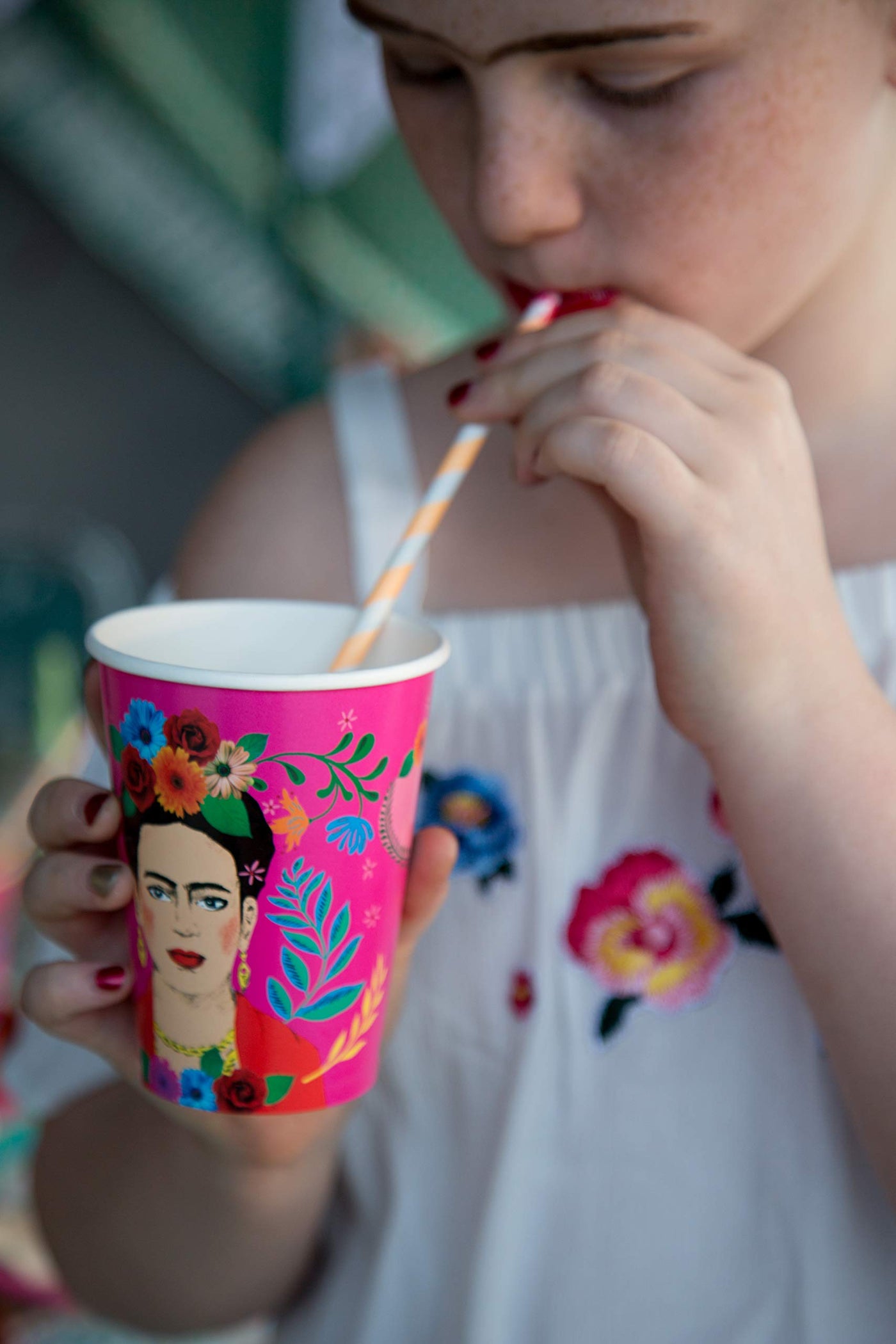 Talking Tables Disposable Pink Paper Party Cups Boho Frida Kahlo Themed Table Decorations Home Recyclable Eco-friendly For Summer Birthday BBQ Celebration Fiesta (340ml/12oz) Pack of 8