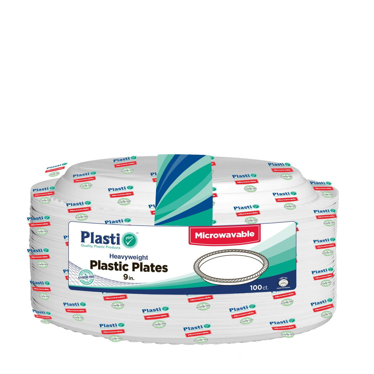 - Q: Can these plates be used in a microwave or oven? A: No, Plasti Plus disposable plates are not microwave or oven safe and should not be used for heating food.