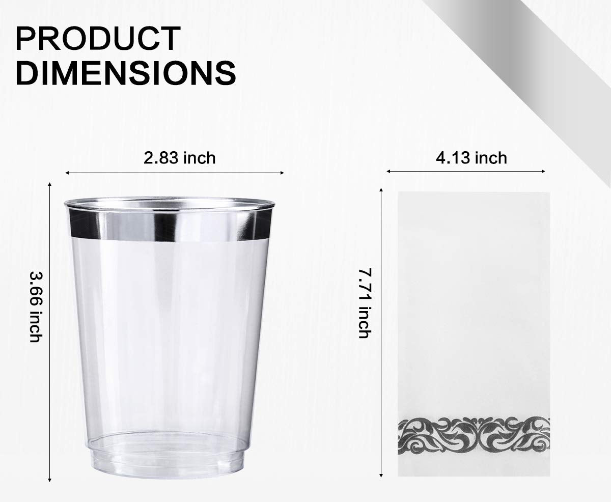 350 Piece MCIRCO Silver Dinnerware Set - 100 Silver Rim Plastic Plates - 50 Silver Plastic Silverware - 50 Silver Plastic Cups - 50 Linen Like Silver Paper Napkins 50 Guest Disposable Silver Dinner
