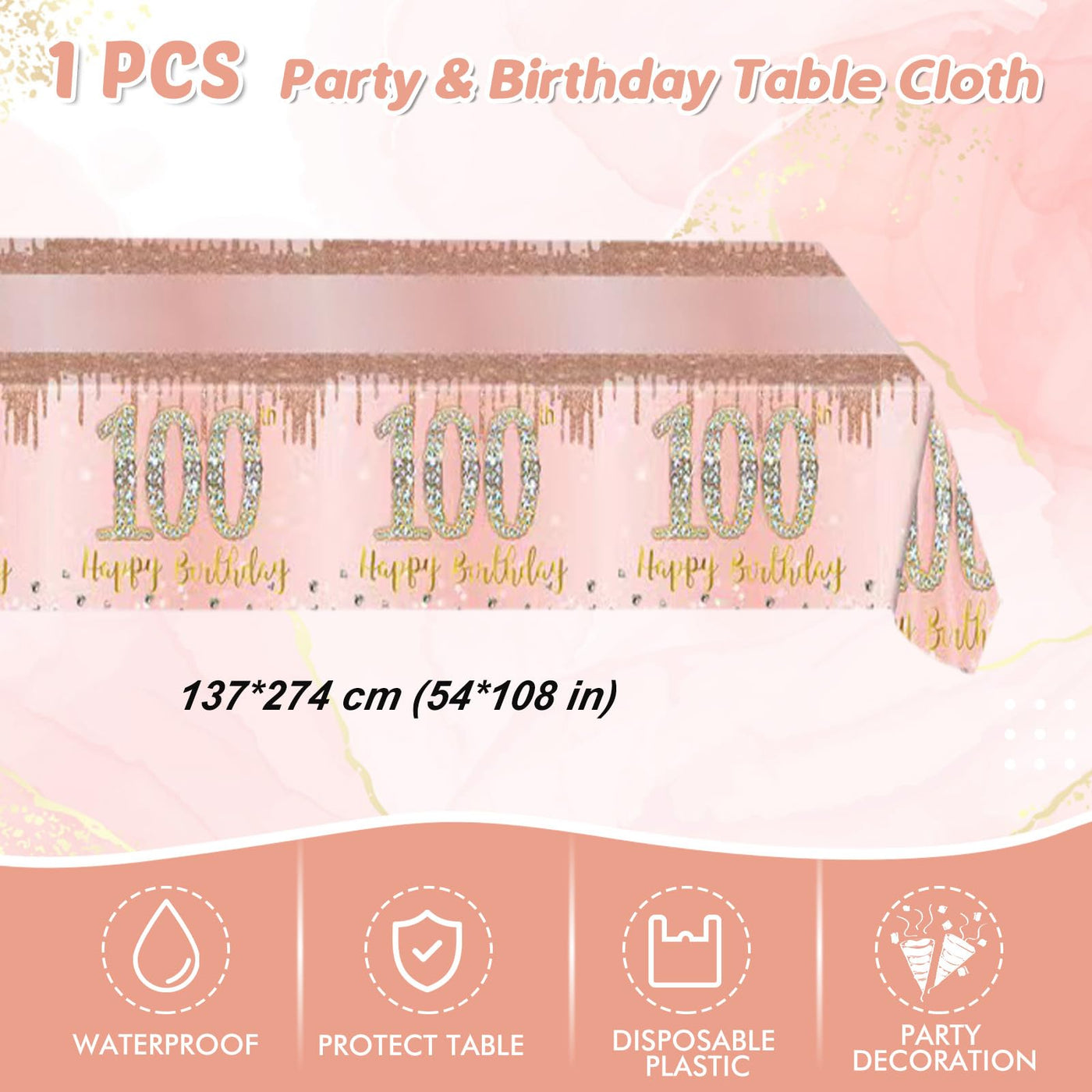 - Q: What is included in the 41Pcs 100th birthday decorations set? A: The set includes 20 paper dinner plates, 20 rose gold birthday napkins, and 1 tablecloth, making it suitable for serving 20 guests.