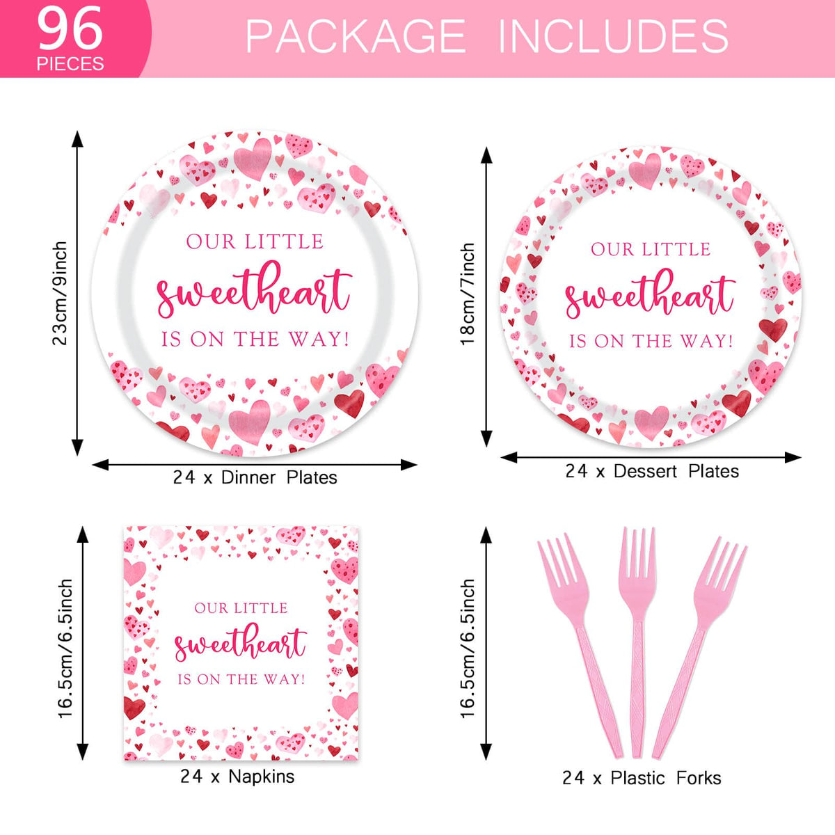 96Pcs A Little Sweetheart Is On The Way Party Decorations Valentine Baby Shower Plates Napkins Forks Dinnerware Set For 24 Guest