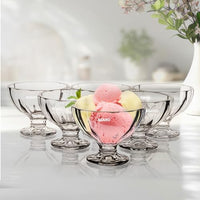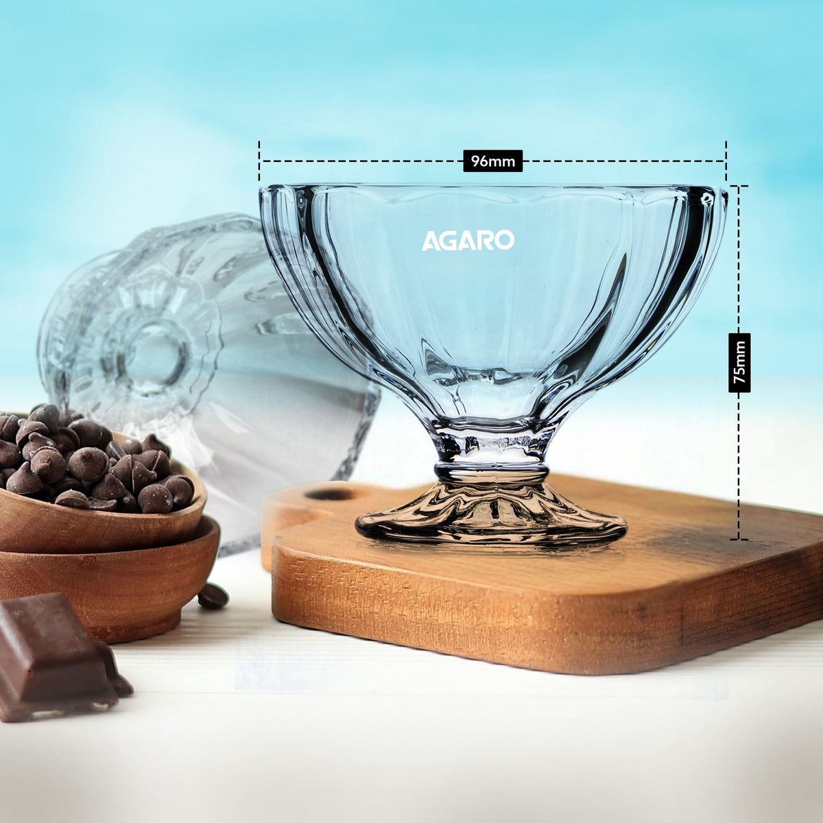Agaro Glass Elegant Ice Cream Bowl 140Ml Set Of 6, Ice Cream Bowl, Dessert Cup For Sundae, Sweets, Snacks, Fruit, Pudding, Nuts
