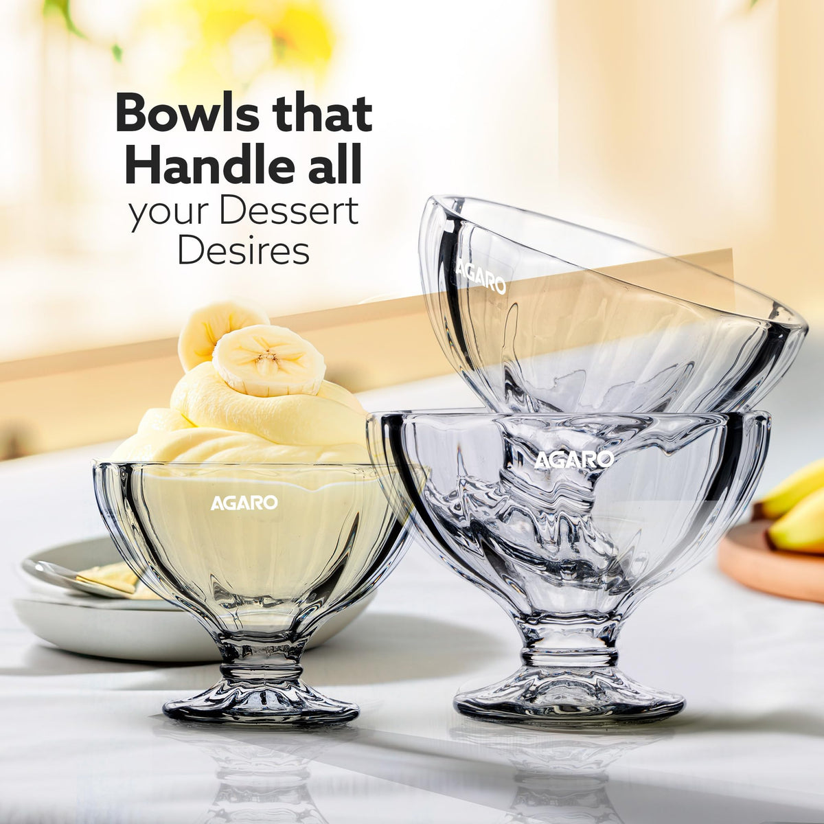 Agaro Glass Elegant Ice Cream Bowl 140Ml Set Of 6, Ice Cream Bowl, Dessert Cup For Sundae, Sweets, Snacks, Fruit, Pudding, Nuts Or Dip, Serving Bowls, Tableware Set, Transparent
