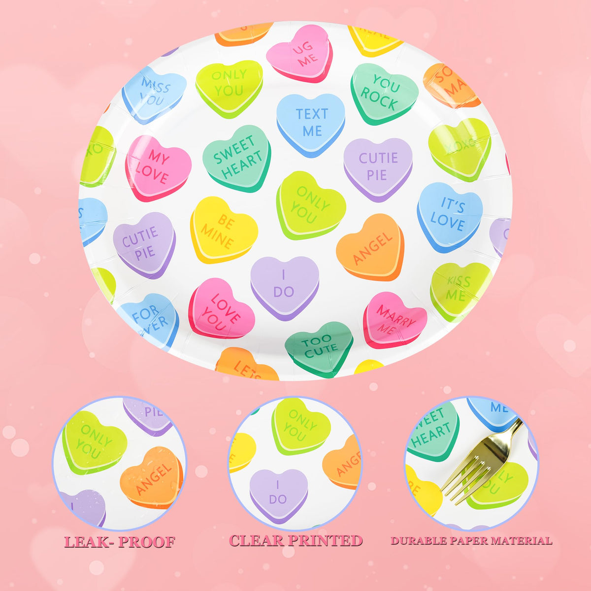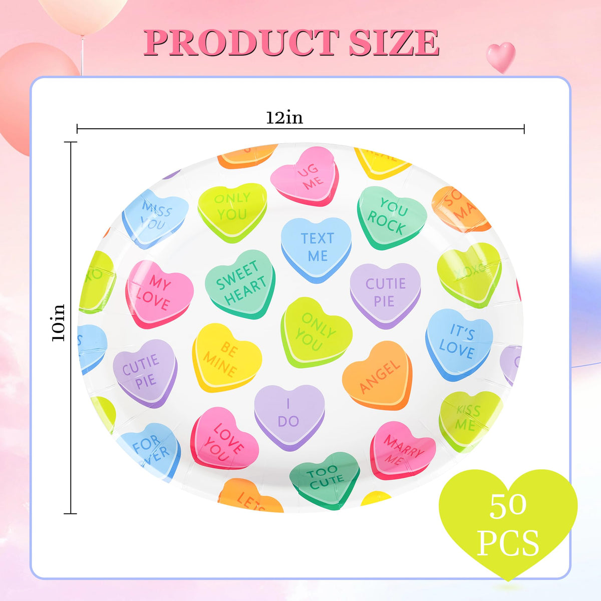 Aimfun 50Pcs Conversation Heart Oval Paper Plates Valentine'S Day Disposable Party Plates Colorful Hearts 10'' X 12'' Dinner Ser