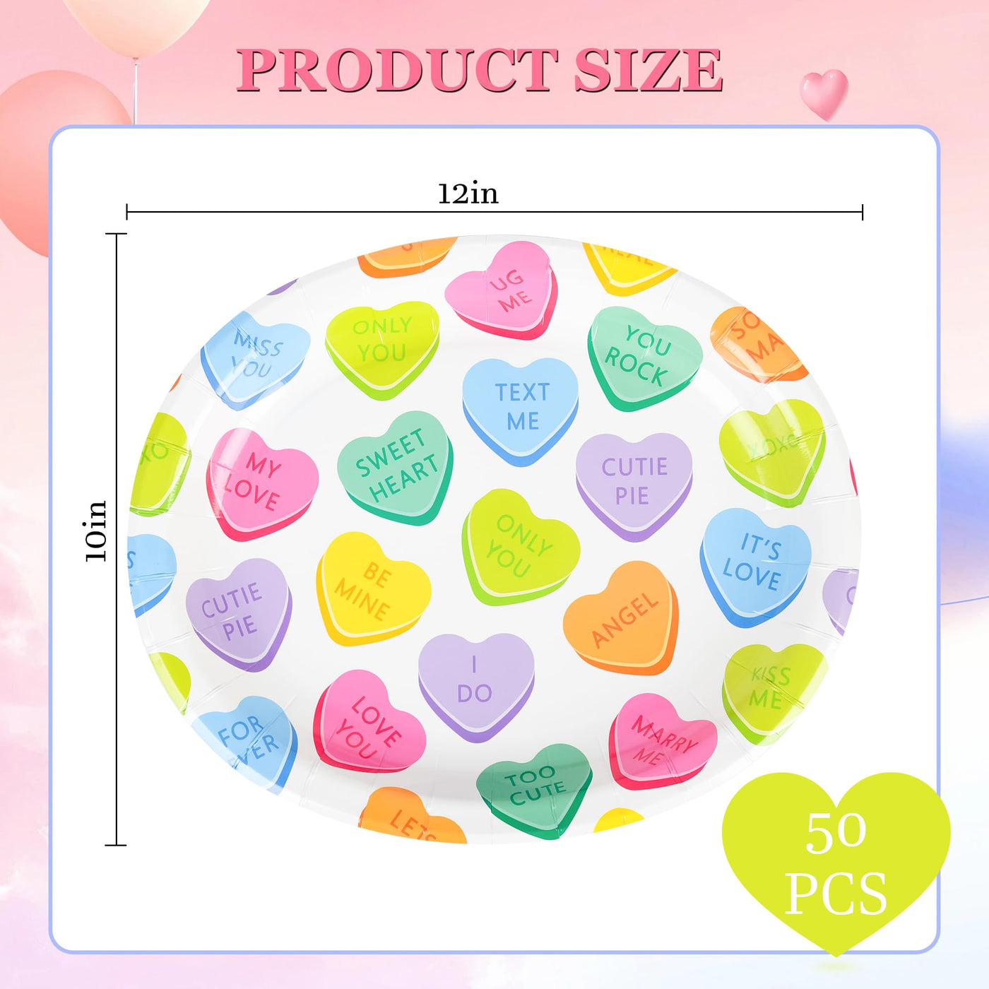 - Q: How many plates are included in the package? A: The package includes 50 disposable oval conversation heart paper plates.