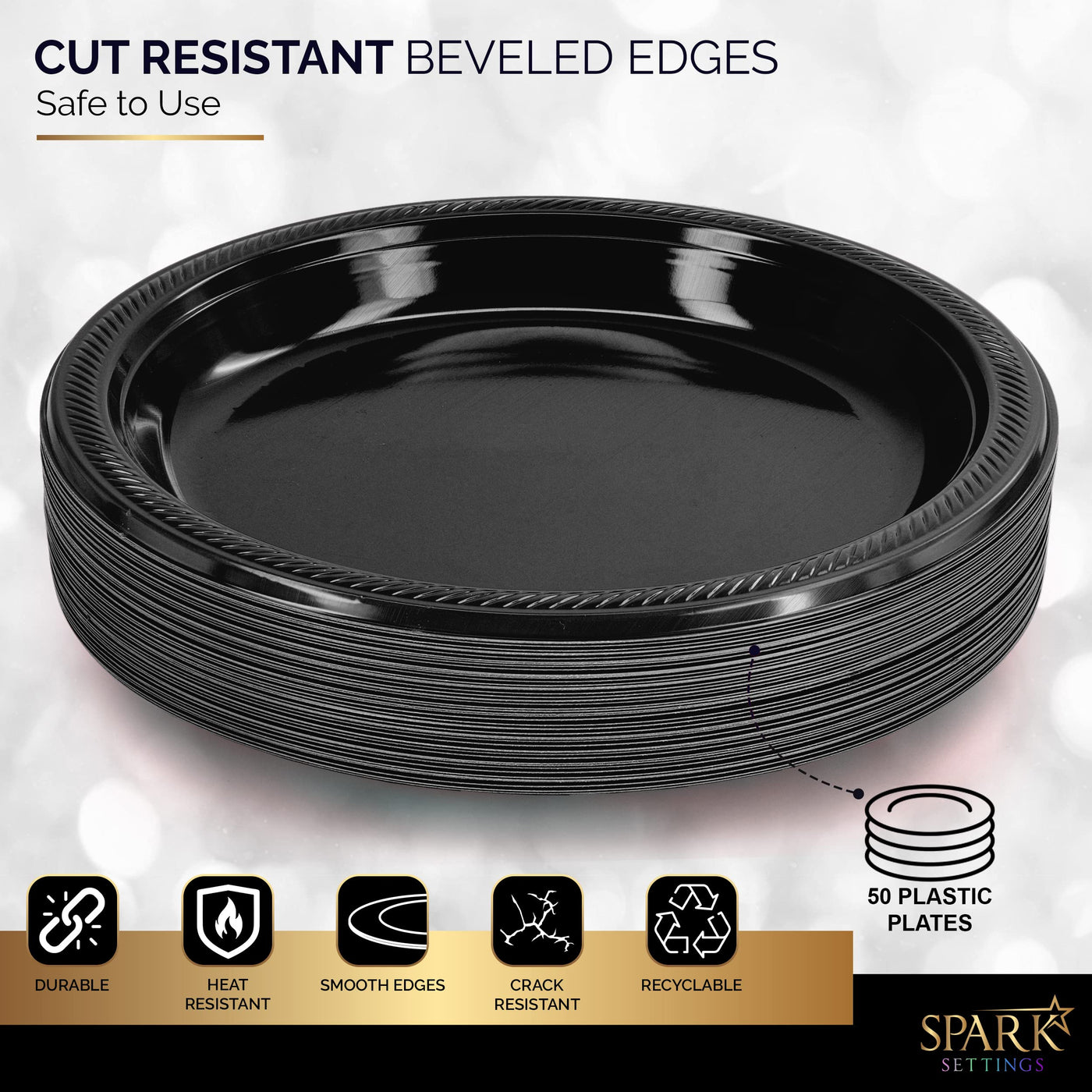 • Q: How many plates are included in a pack? A: Each pack contains 50 disposable plastic plates.