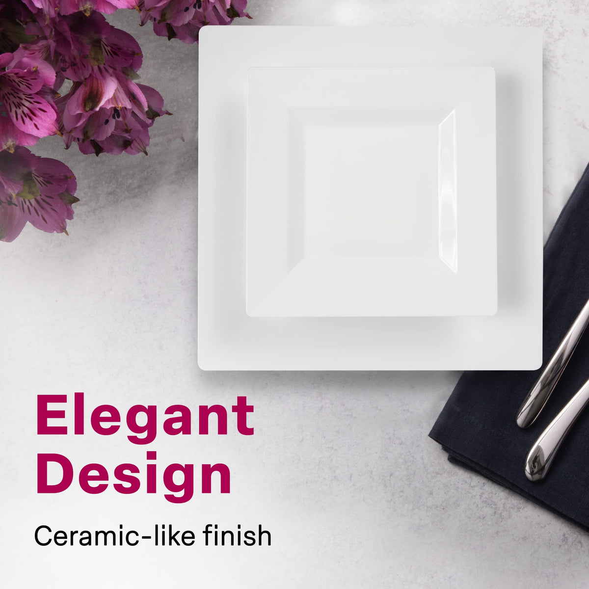 Aya'S Cutlery Kingdom 100 Square Plastic Plates - Heavy Duty Disposable Plates - Includes 50 Dinner Plates (10-Inch) And 50 Sala