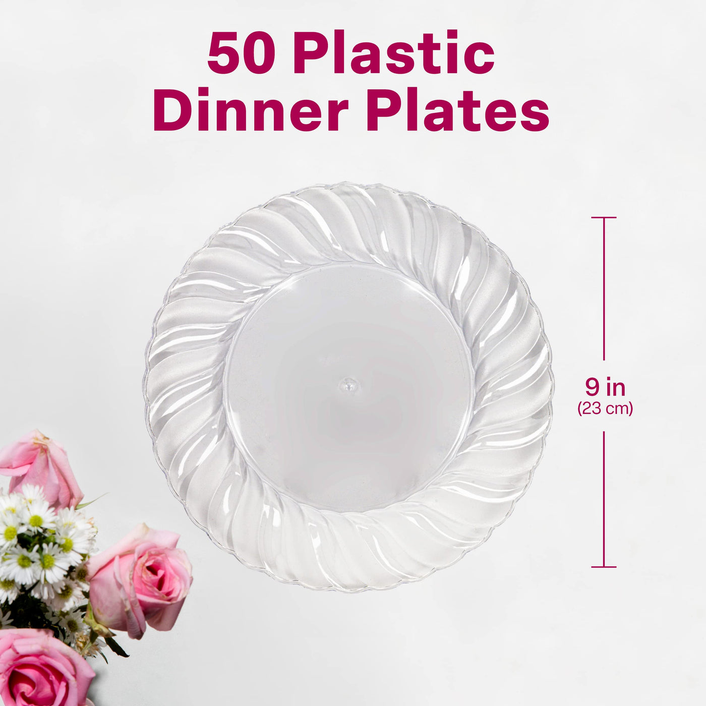 - Q: How many plates come in a pack? A: Each pack contains 50 clear plastic plates, providing ample supply for parties and gatherings.