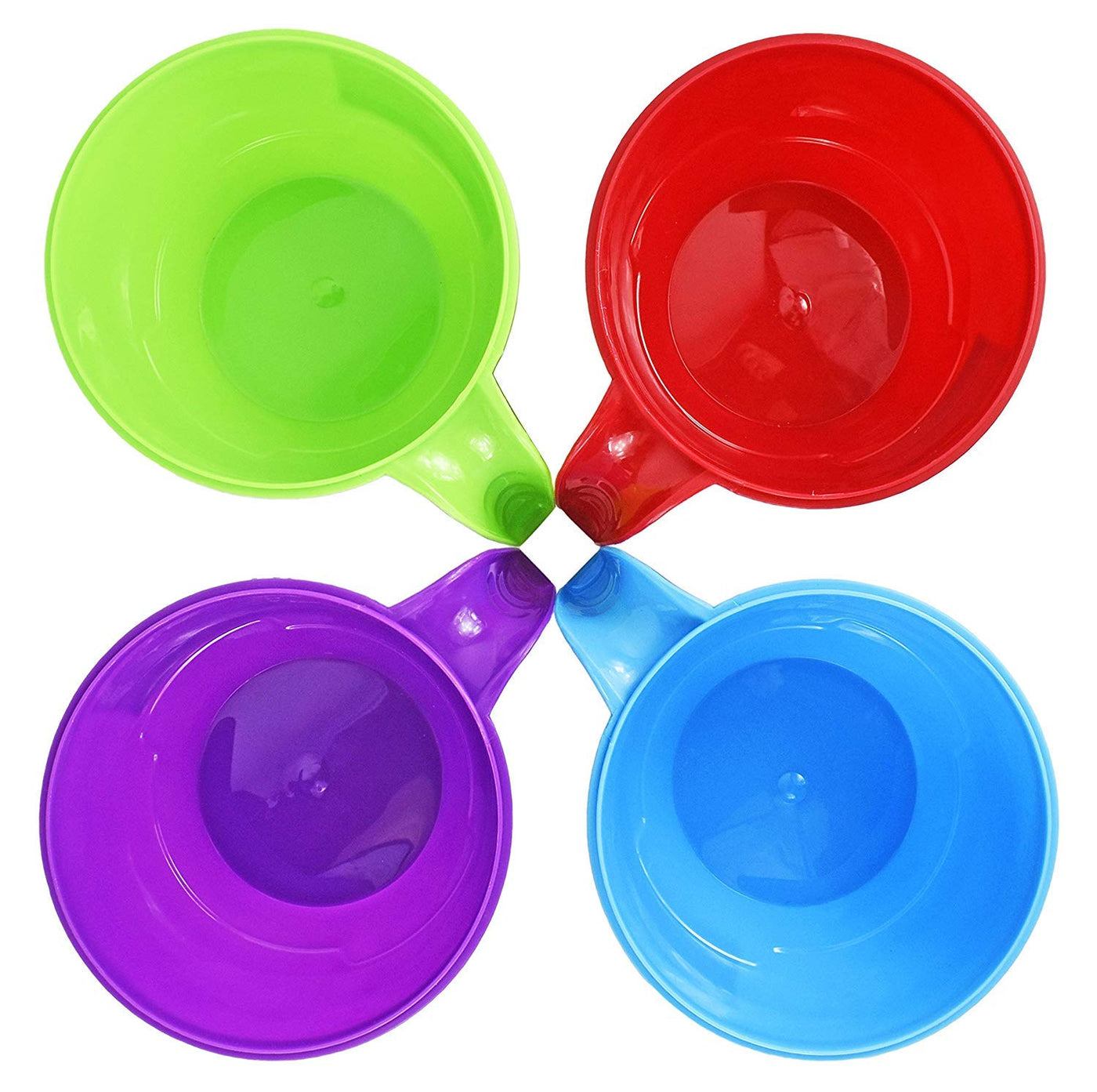 - Q: What colors are available in this set of soup mugs? A: The set includes a variety of colors such as purple, blue, red, orange, green, and grey, adding a fun touch to your kitchenware.