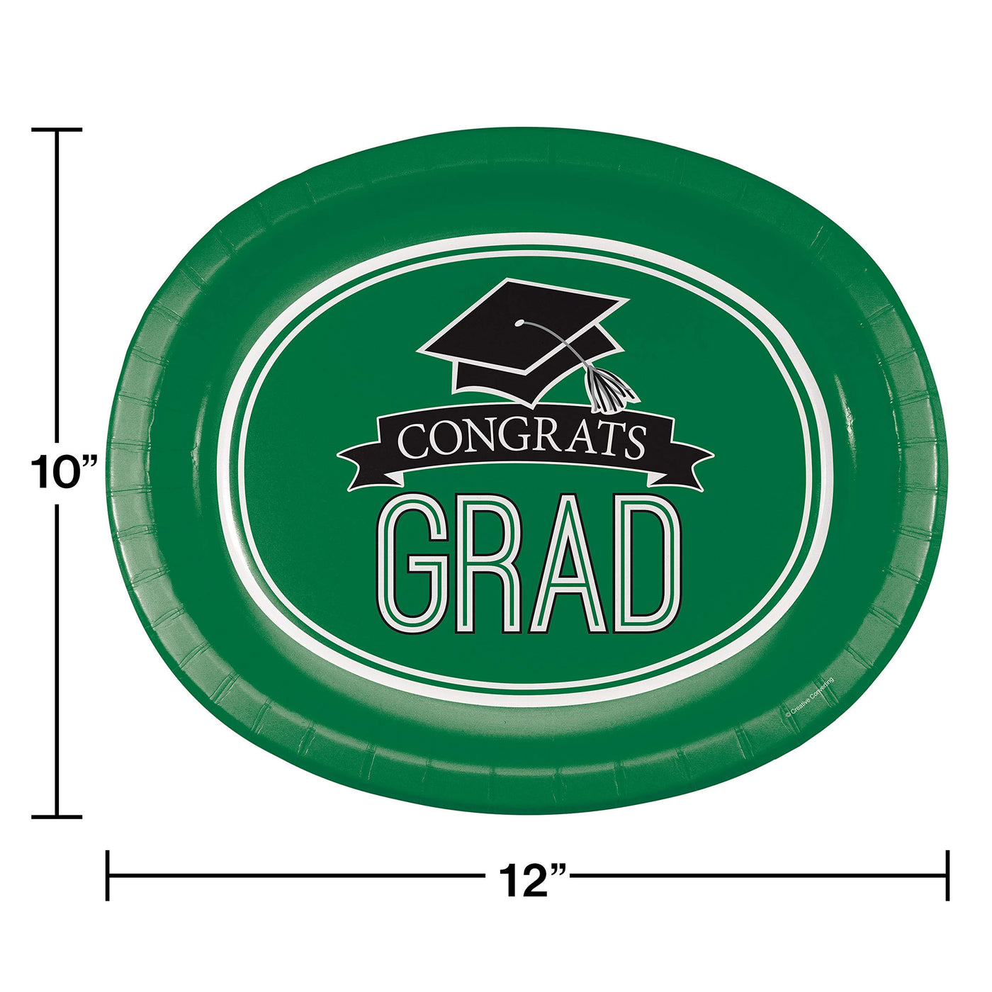 Creative Converting 8 Count School Spirit Oval Graduation Party, Emerald Green Paper Platter, One Size