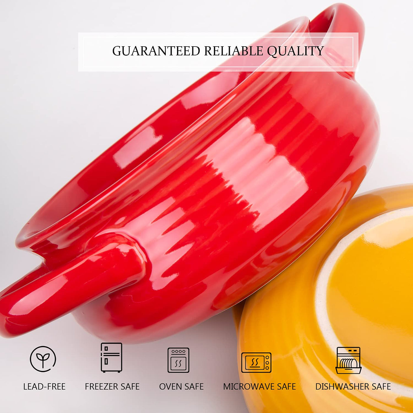 Cutiset 20 Ounce Multicolor Ceramic Soup Bowls With Handles,Ceramic Serving Bowl Set For Soup, Cereal And Stew, Set Of 4