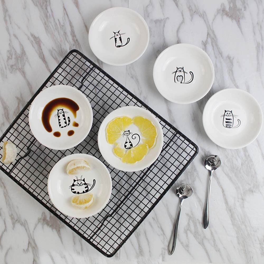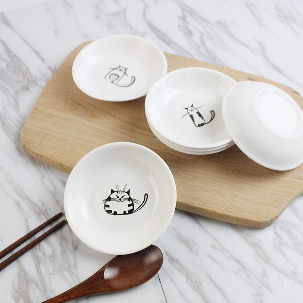 Fuyu 6Pcs Cute Cat Ceramic Sauce Dish Seasoning Dish Dessert Plate Snack Plate Side Dish, 4 Inches