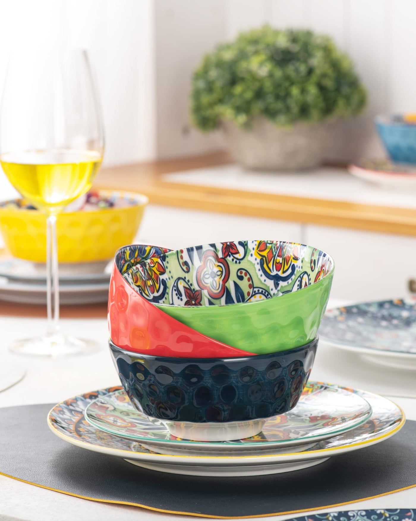 - Q: Are the colors and patterns on these bowls consistent? A: Each bowl features a unique hand-painted design with vibrant colors and patterns that complement each other, ensuring a festive table setting.