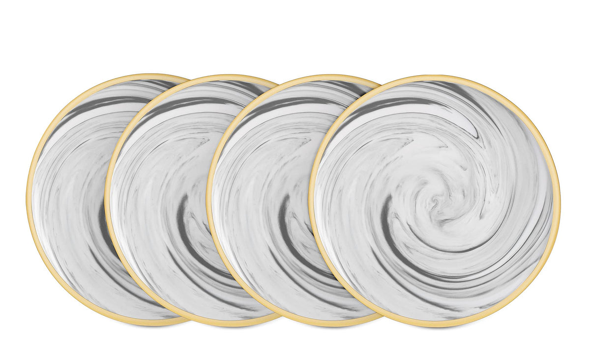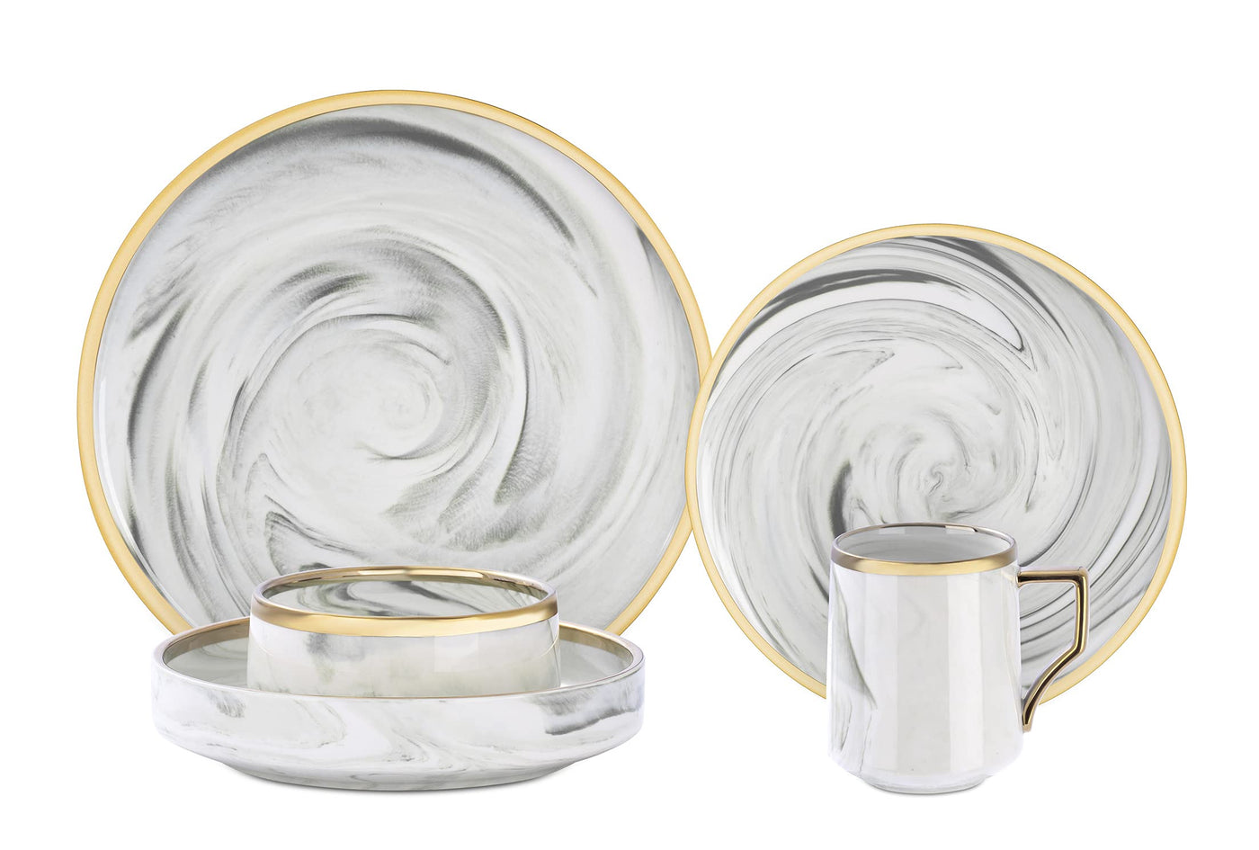 HomeVss, Fine China Artisan Marbled 20pc Dinnerware Set, Grey with Gold Line