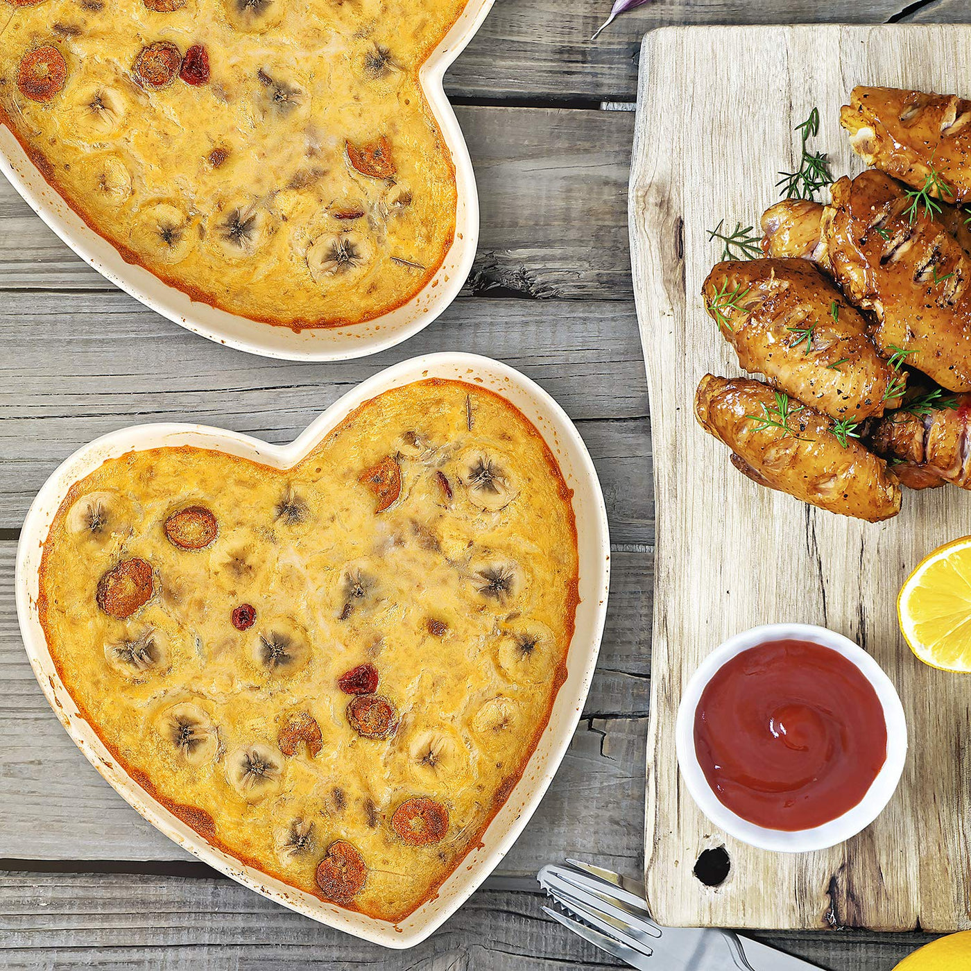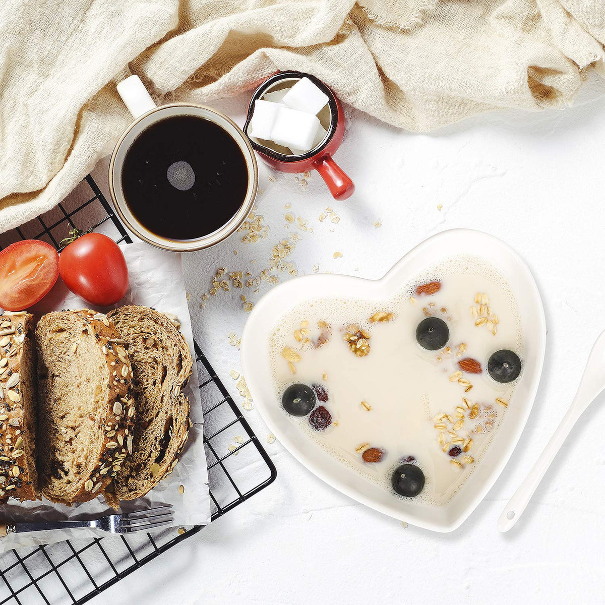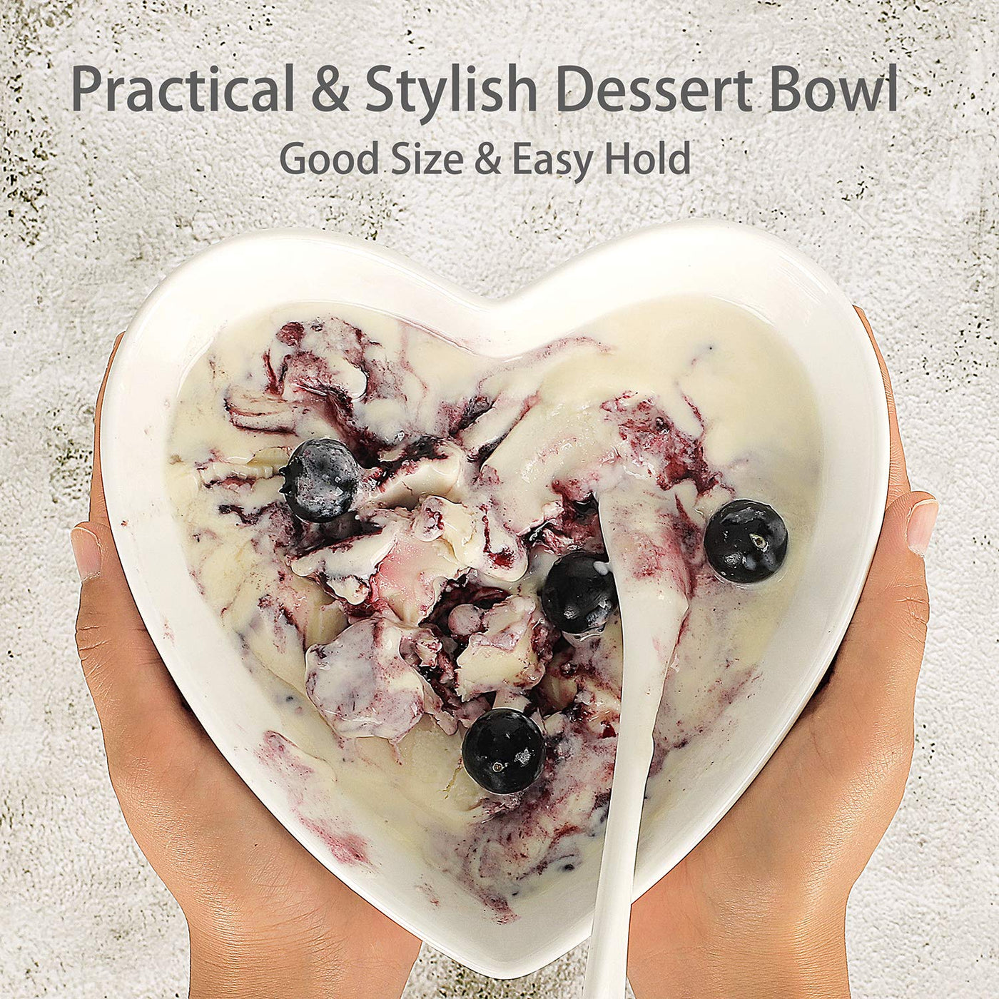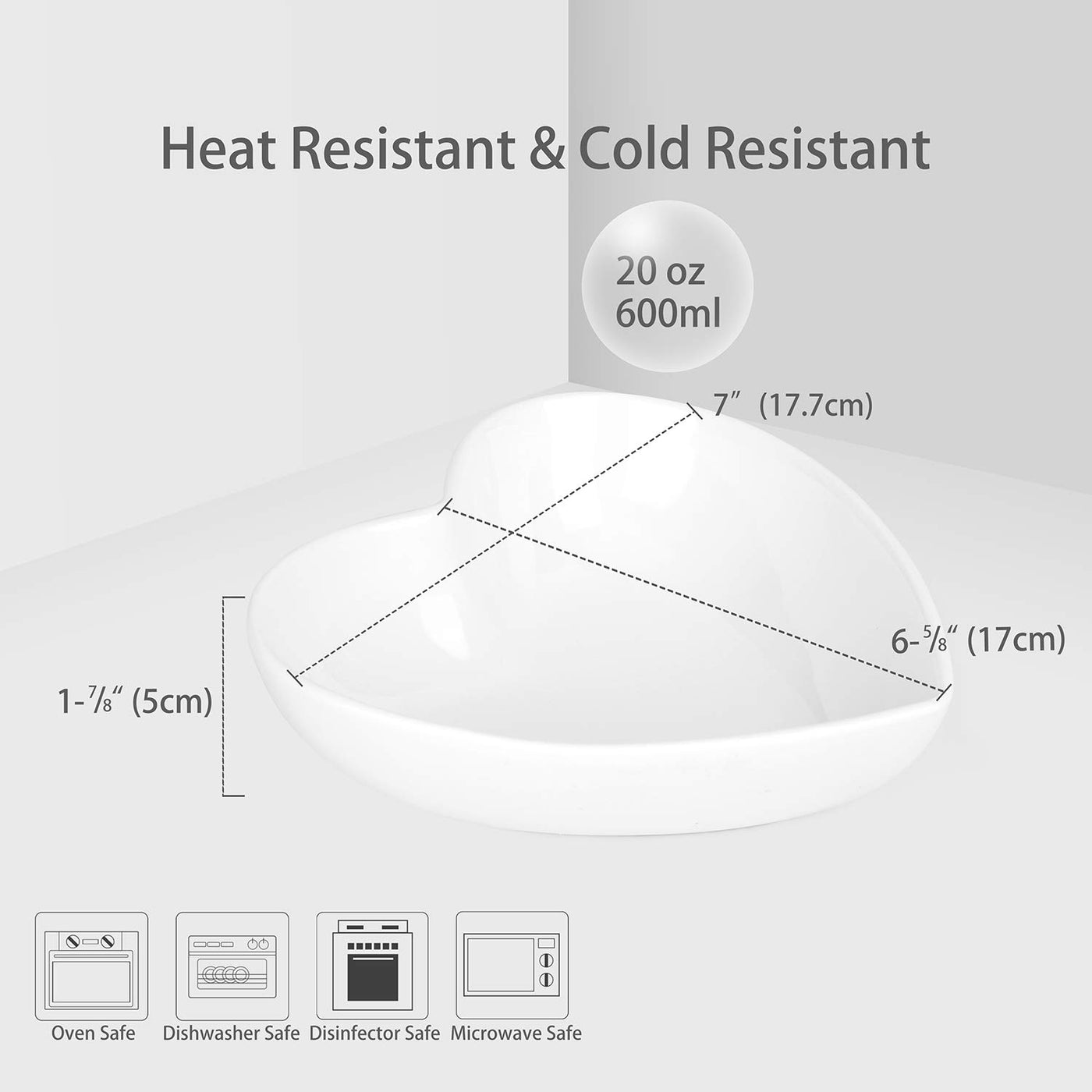 Keponbee Heart Bowls Porcelain 2 Pcs White Heart-Shaped Bowl Dessert Bowls/Salad Bowl 7 Inch, 20 Oz