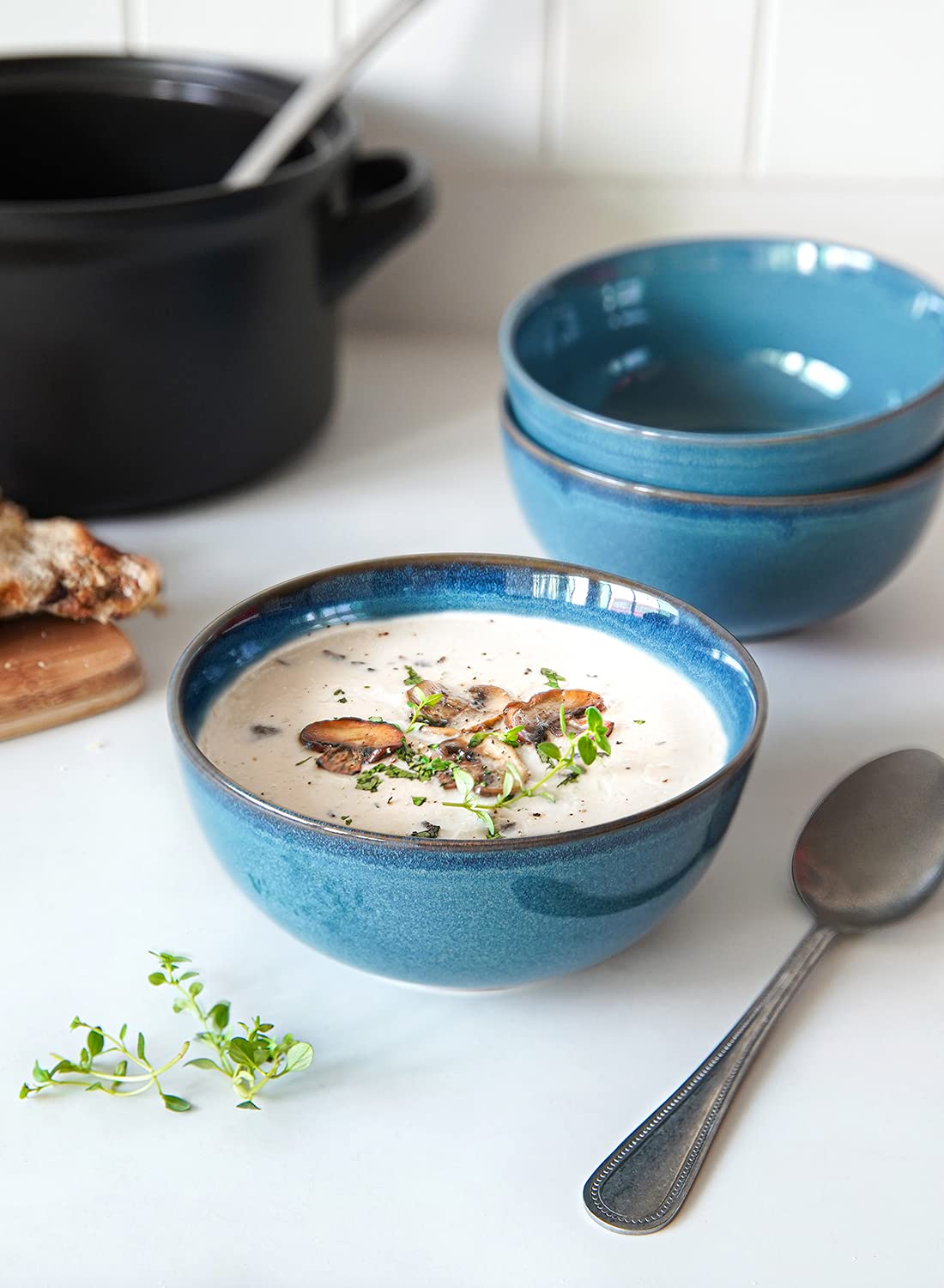 - Q: What makes the glaze on these bowls special? A: The reactive glaze provides a beautiful, dull single color that enhances the visual appeal of your meals.