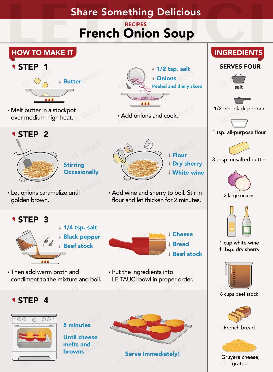 - Q: What colors are available for these soup bowls? A: The LE TAUCI French Onion Soup Bowls are available in a vibrant red color, adding a pop of color to your dining table.