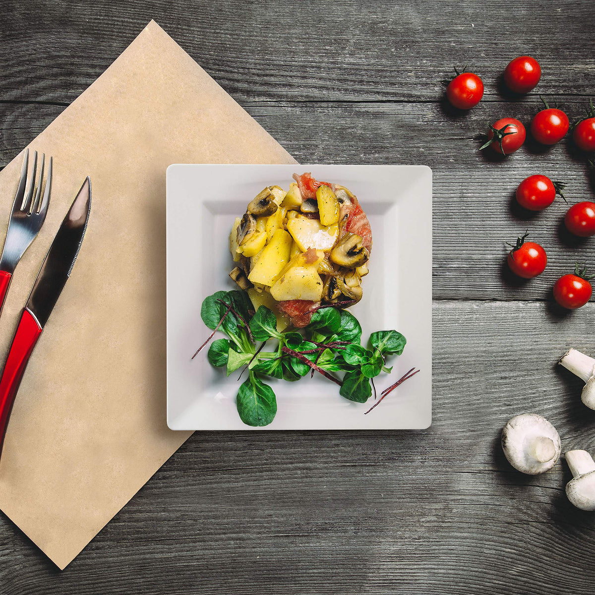 - Q: What is the size of the Oasis Creations White Square Plates? A: The Oasis Creations White Square Plates measure 7.25 inches by 7.25 inches.