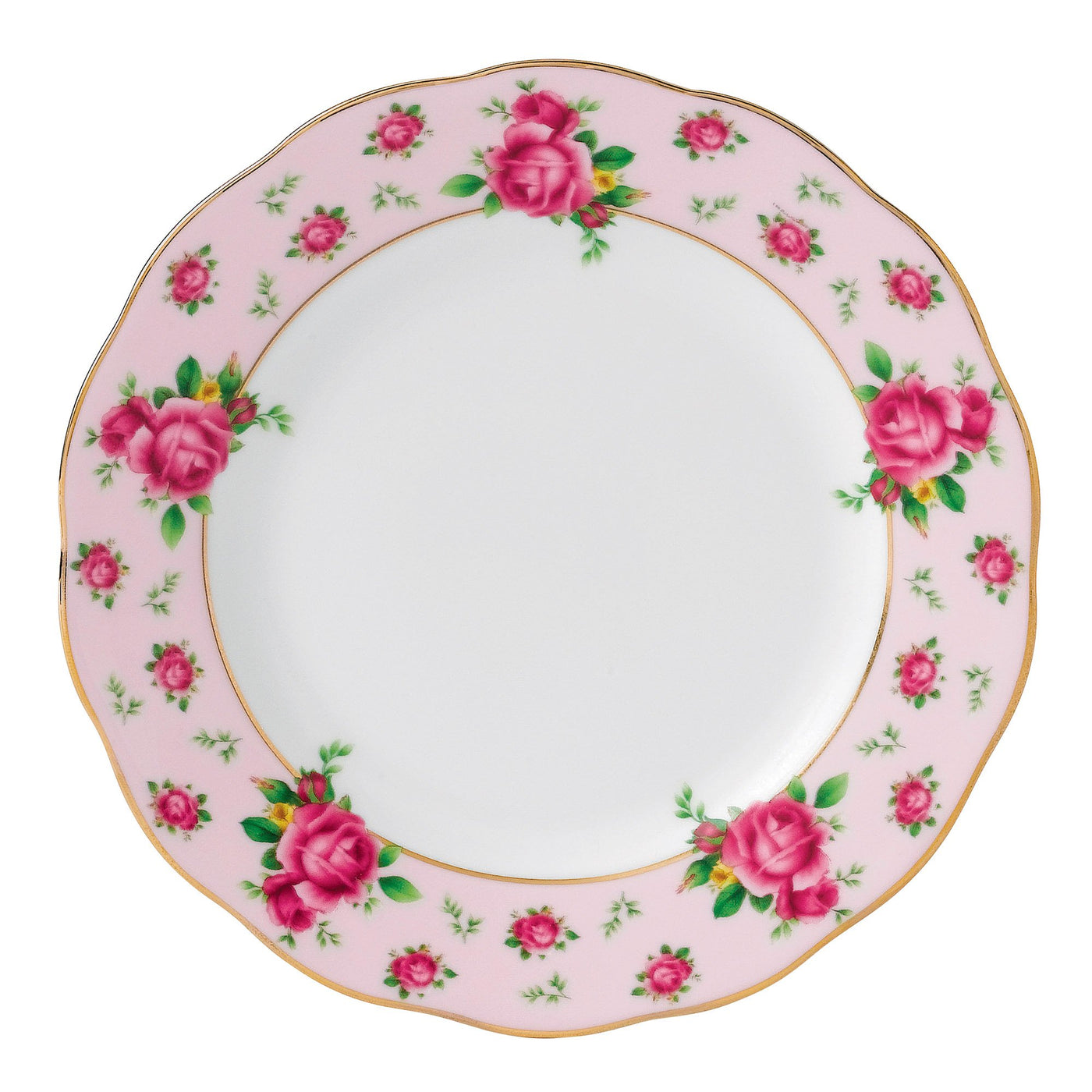 • Q: What is the style of the Royal Albert New Country Roses Pink dinnerware? A: The style is vintage and traditional, characterized by its charming floral design and elegant finish.