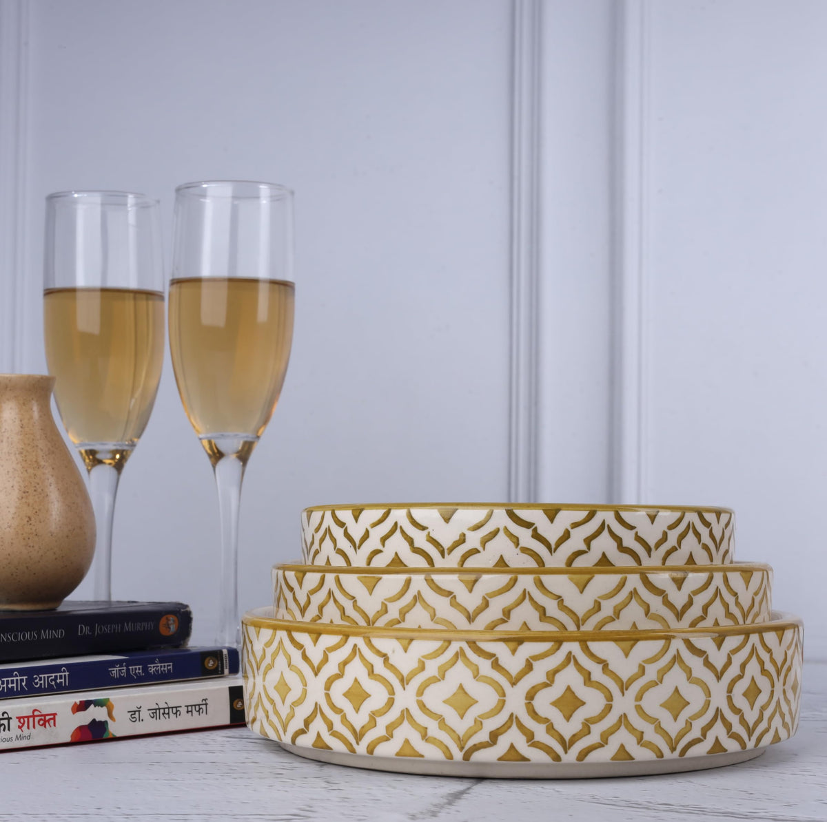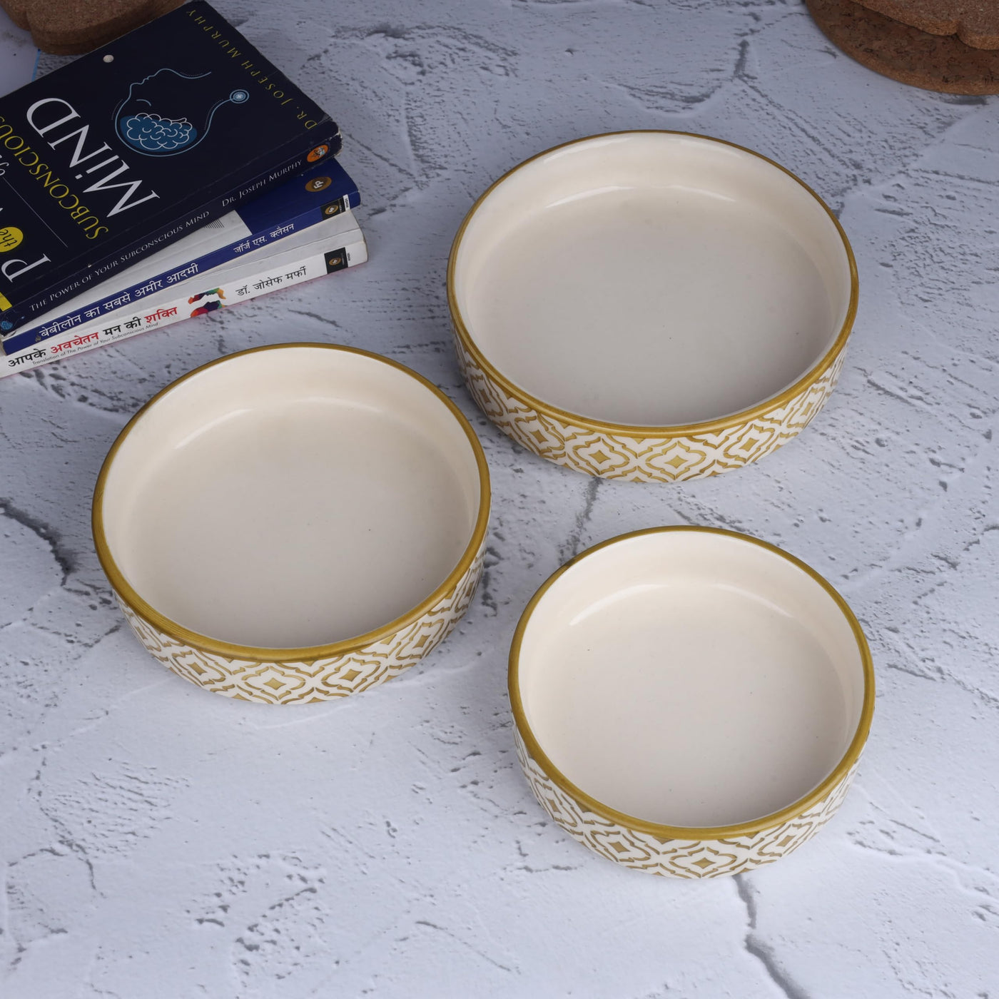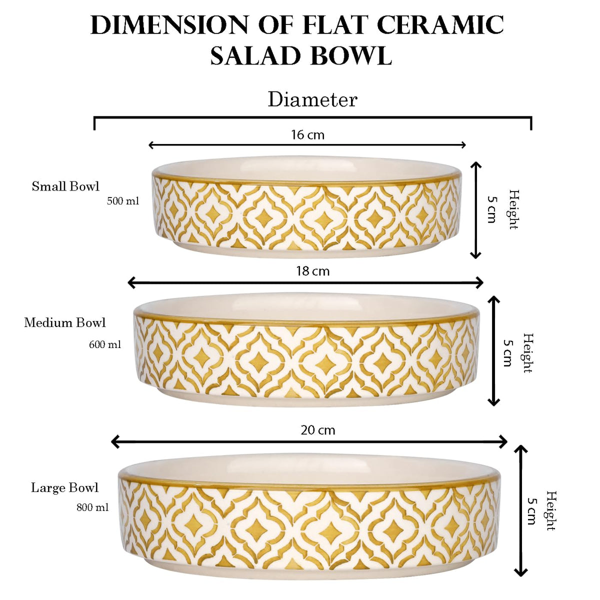 Separate Way Ceramic Flat Deep Serving Bowl Set Of 3, Mix Size - 800Ml, 600Ml, And 500Ml | Glossy Finish | Salad, Snack, Pasta P