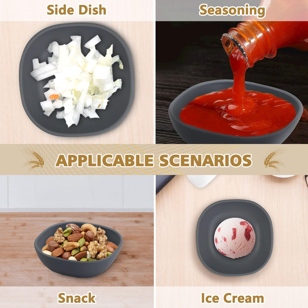 - Q: What types of food can I serve in these bowls? A: These versatile bowls are perfect for serving soy sauce, dips, ice cream, snacks, fruits, and side dishes.