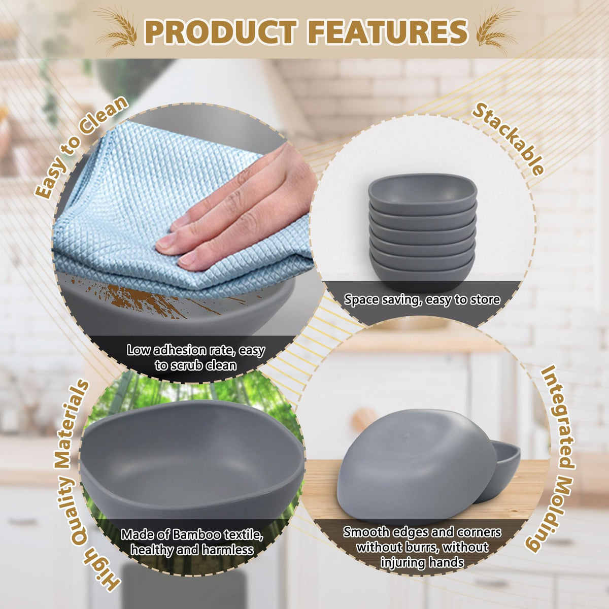 - Q: What color are the bowls? A: The bowls come in a stylish gray color, adding a modern touch to your table setting.