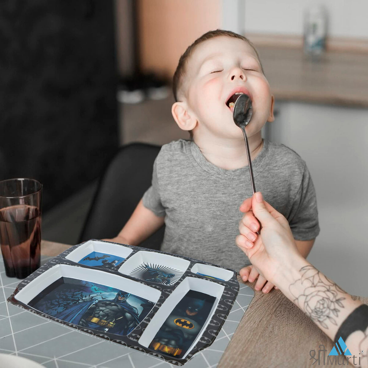 Shree Murti Melamine Rectangular Dinner Plate with 5 Sectioned Funny Cartoon Printed Plate (Batman) |Perfect Gifting for Navratr