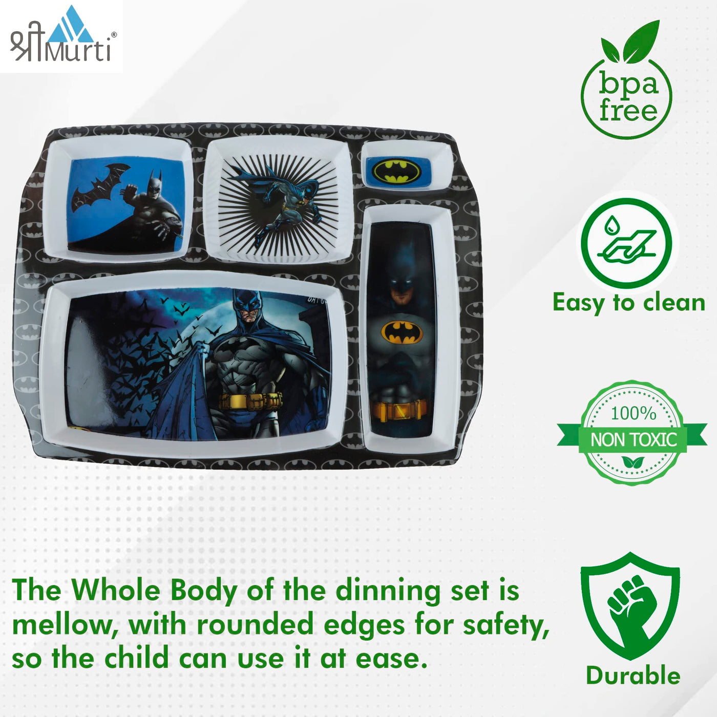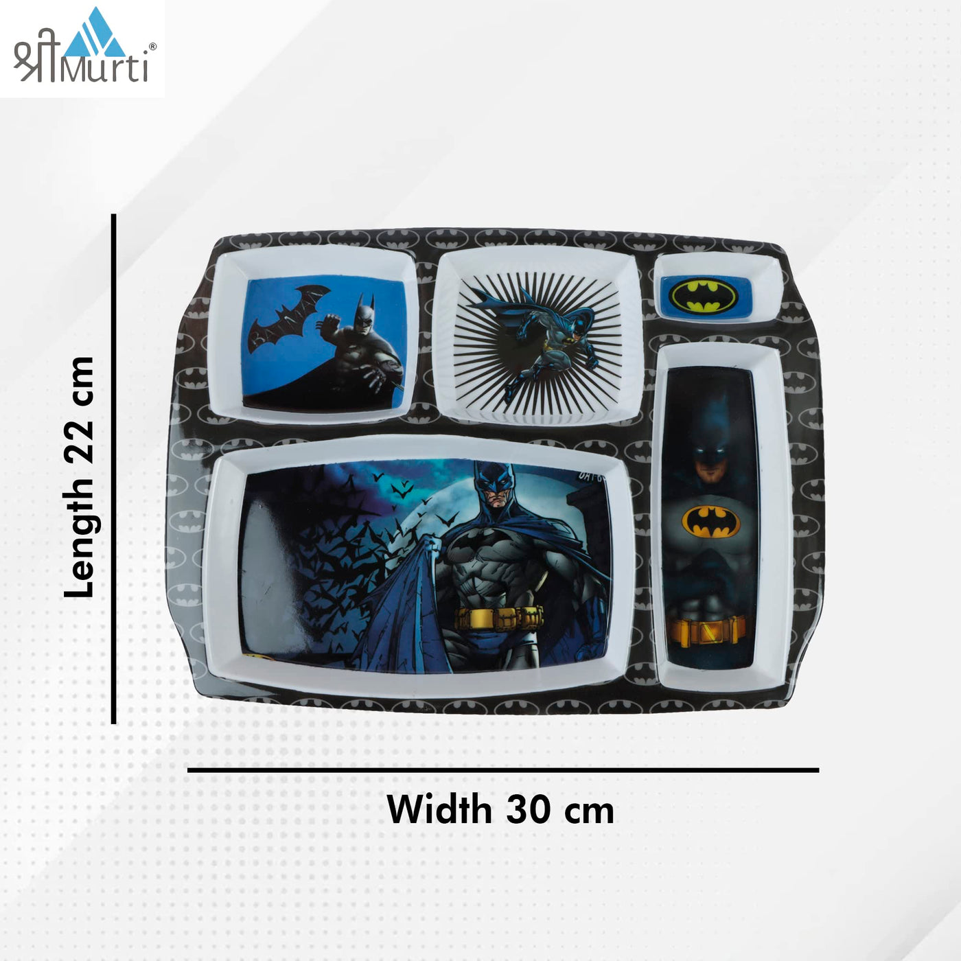 Shree Murti Melamine Rectangular Dinner Plate with 5 Sectioned Funny Cartoon Printed Plate (Batman) |Perfect Gifting for Navratri Diwali Dussehra Festivals
