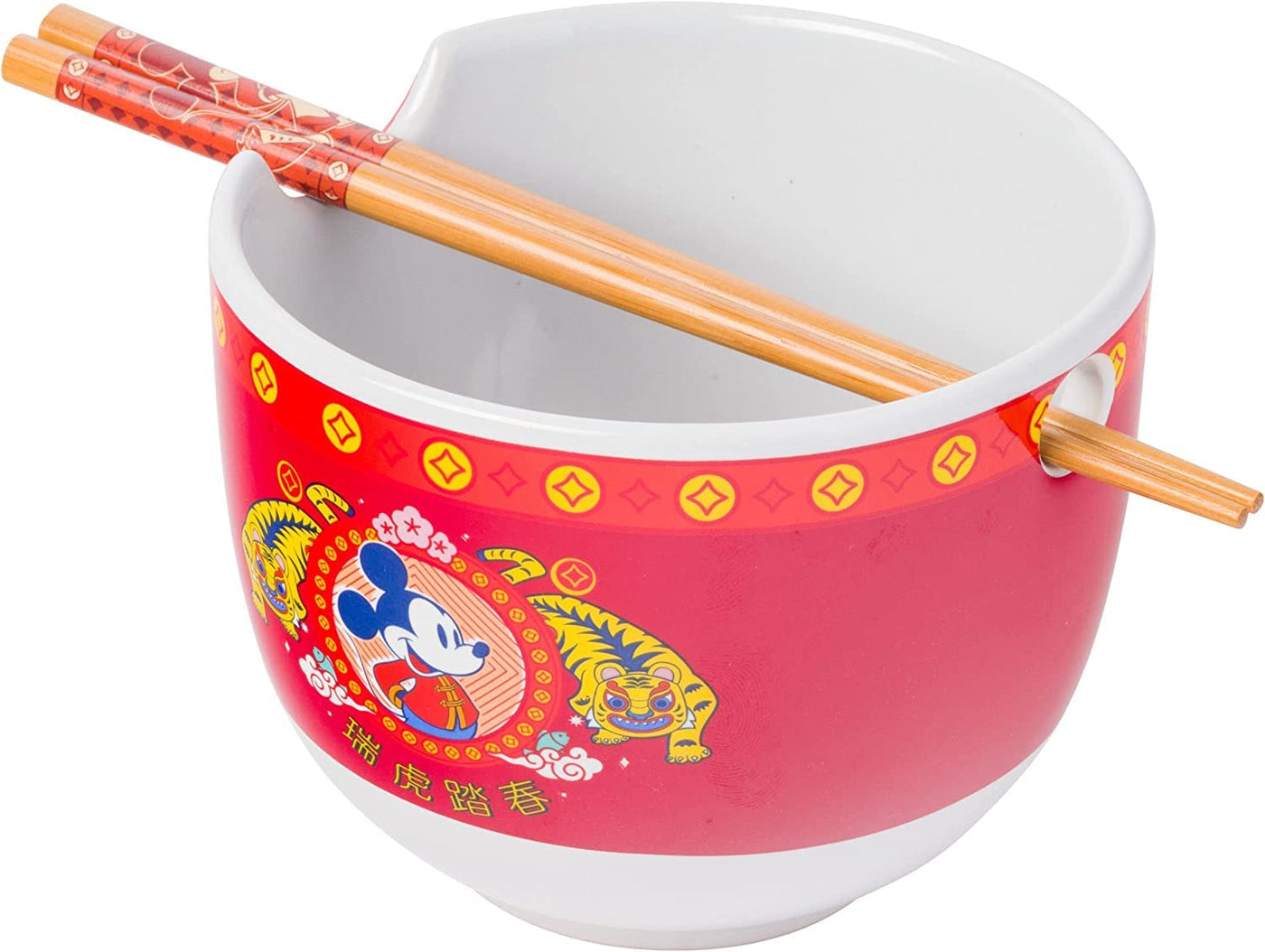 Silver Buffalo Disney Mickey Mouse Lunar Chinese New Year Tiger Ceramic Ramen Noodle Rice Bowl with Chopsticks Microwave Safe 20 Ounces