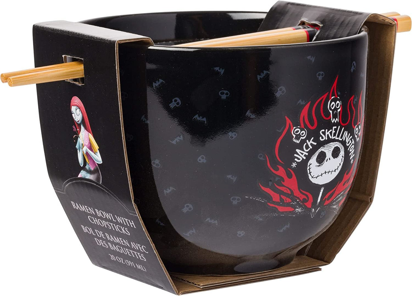 Silver Buffalo Disney Nightmare Before Christmas Jack Skellington Ceramic Ramen Noodle Rice Bowl with Chopsticks Microwave Safe 20 Ounces
