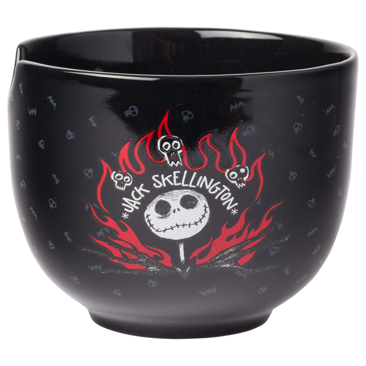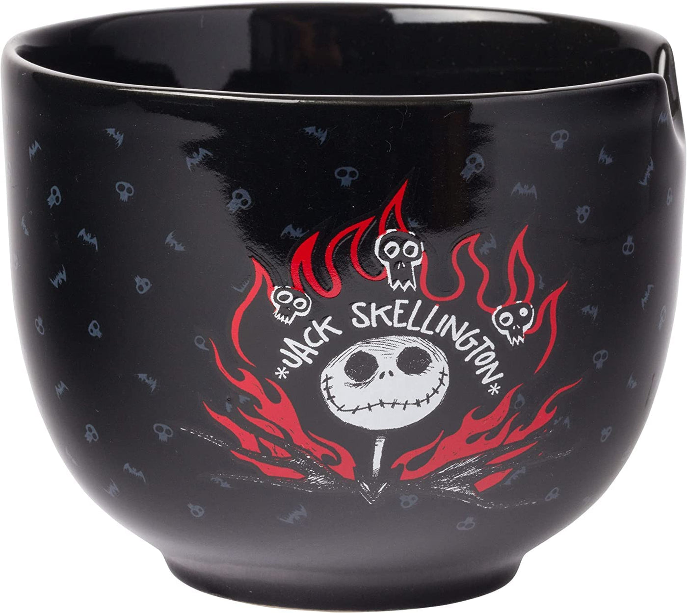 - Q: What design features does the bowl have? A: The bowl features a wide mouth opening and a design with Jack Skellington in front of flames, adding a fun element to your dining experience.