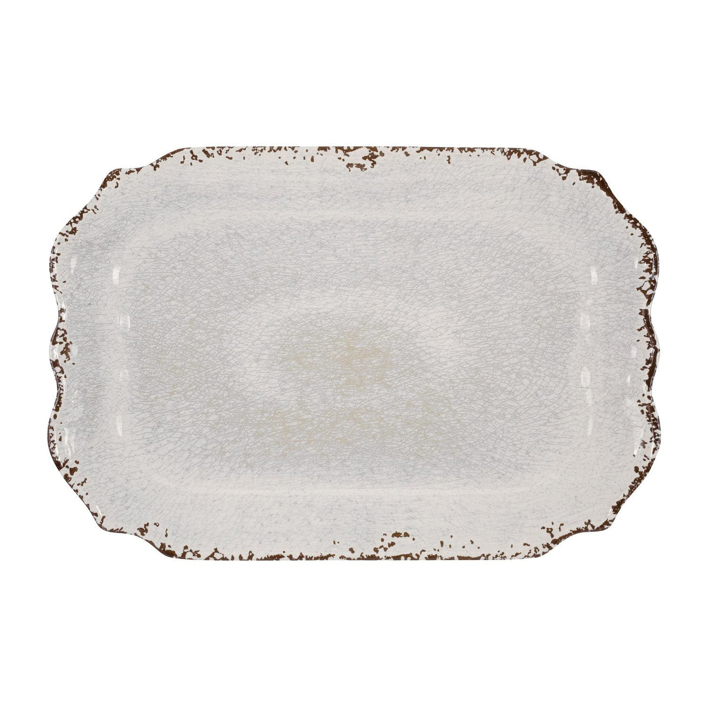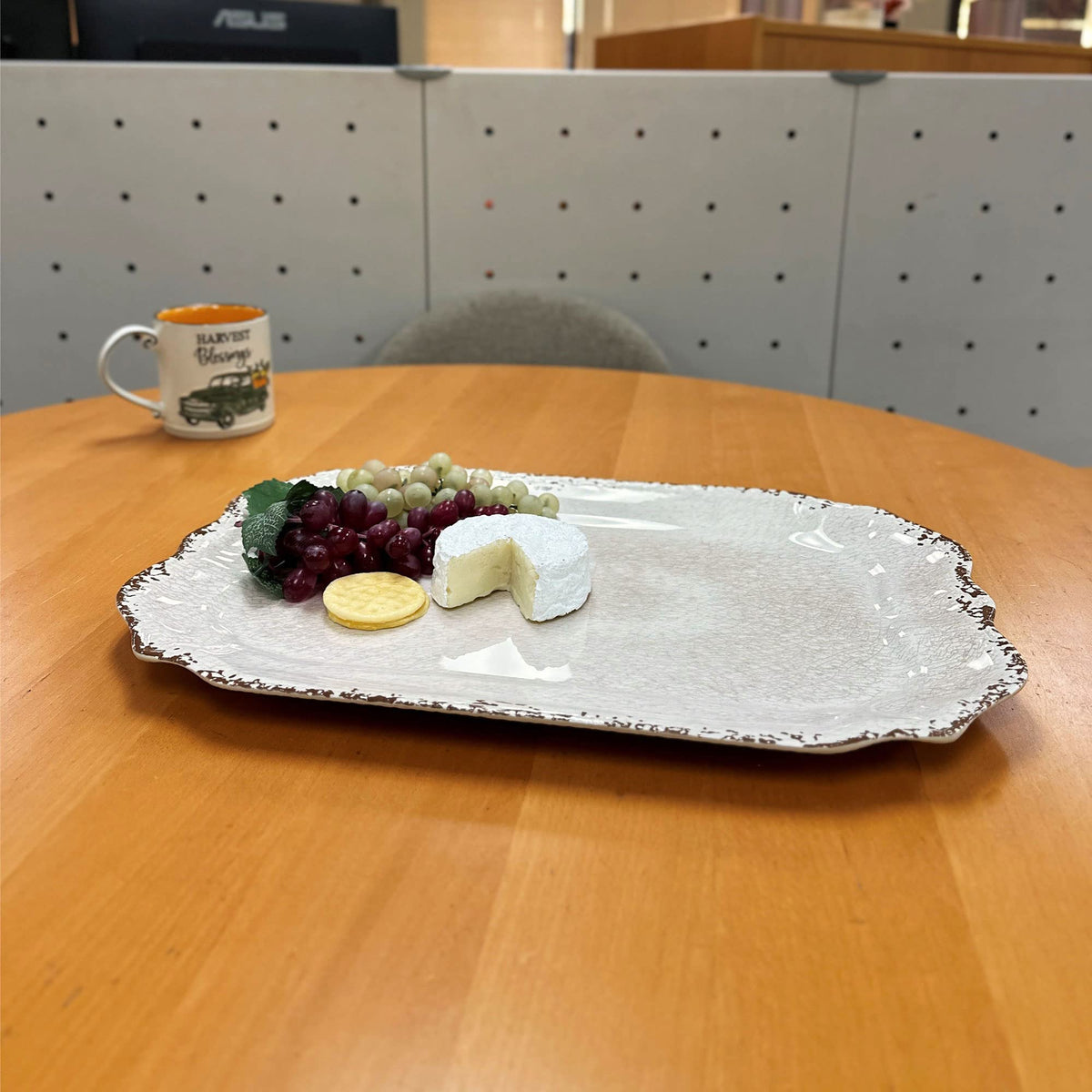 • Q: Does the tray have a special design? A: Yes, it features a crackle look decal that adds a stylish touch to your serving presentation.