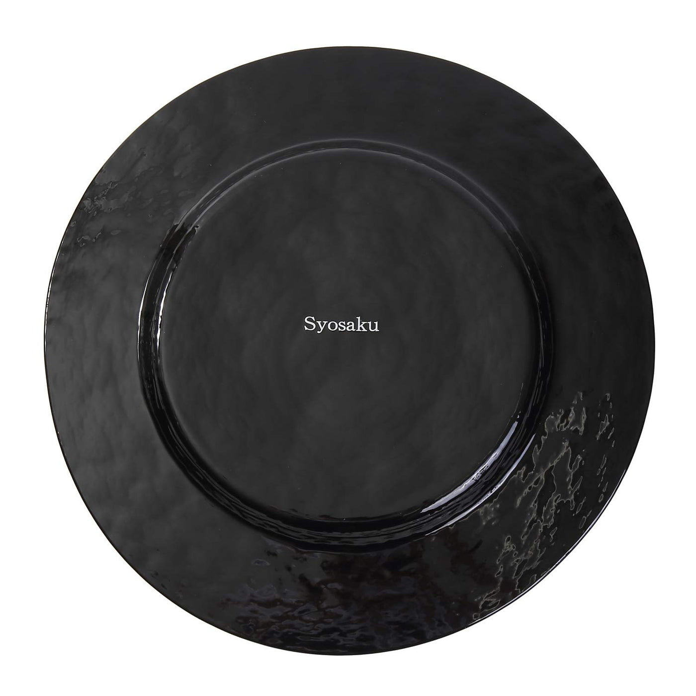 - Q: What is the size of the Syosaku Japanese Urushi Glass Dinner Plate? A: The plate has a diameter of 12.5 inches, a thickness of 0.7 inches, and weighs 2.5 pounds.