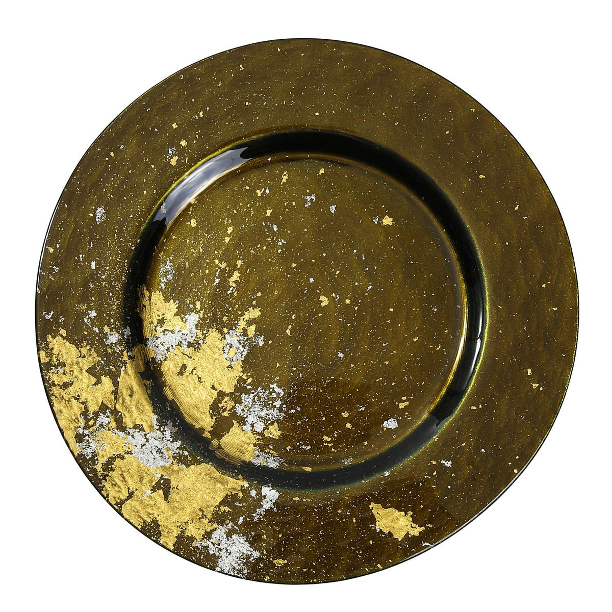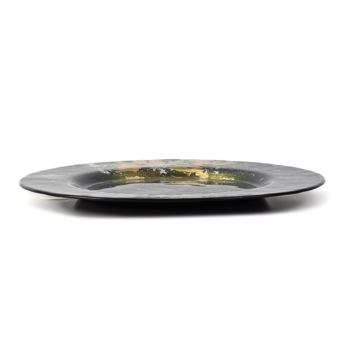 Syosaku Japanese Urushi Glass Dinner Plate F12.5-Inch Majestic Green With Gold Leaf, Dishwasher Safe