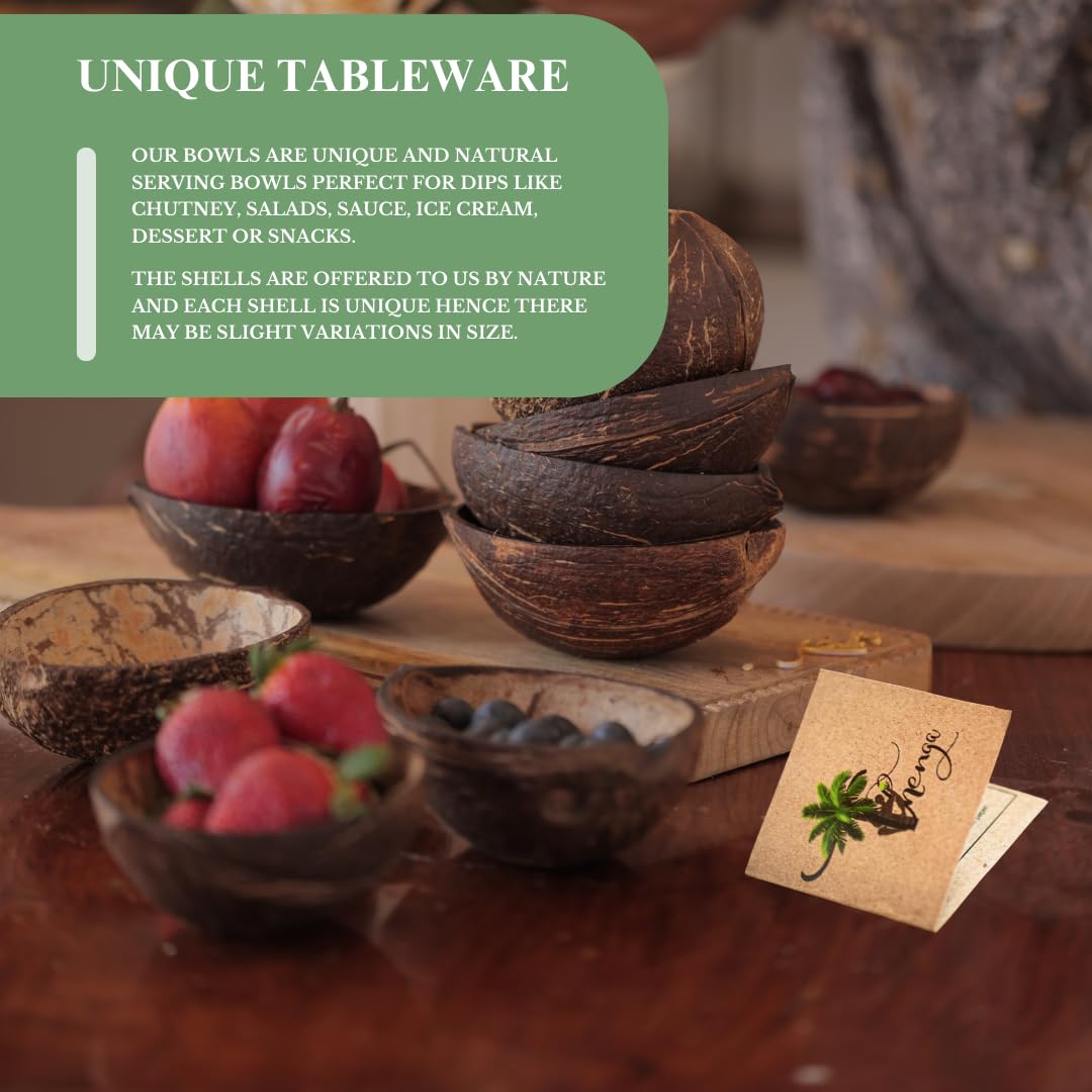 Thenga Natural Oval Coconut Shell Bowls - Set Of 10, 150 Ml, Perfect For Ice Cream, Snacks, Fruits, Salads | Parties & Catering
