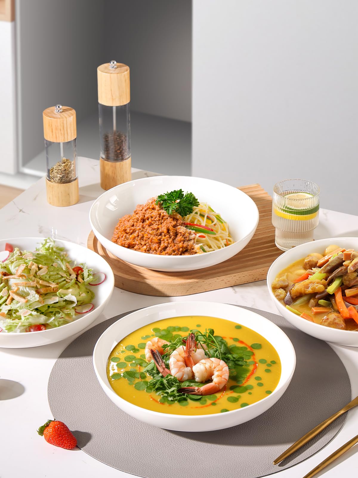 Y Yhy 9.75'' Large Pasta Bowls, 50 Ounces Big Salad Bowls, Ceramic Serving Bowl Set Of 4, Wide And Shallow Bowls Set, Microwave