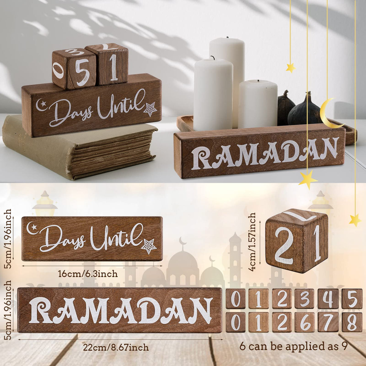 Amyhill 4 Pcs Ramadan Calendar Block Set Ramadan Advent Countdown Eid Calendar Countdown Calendar Ramadan Table Decor Ramadan Wo