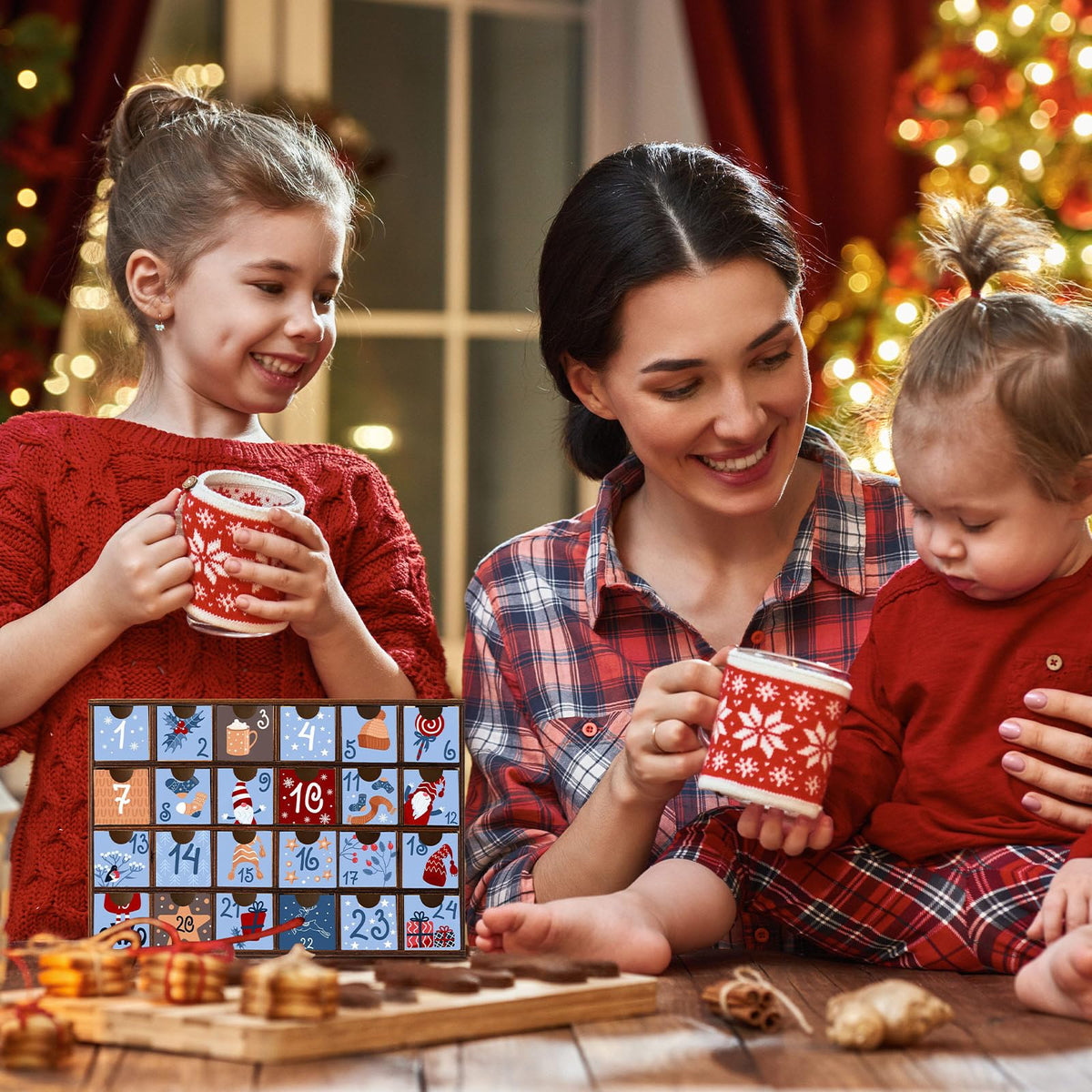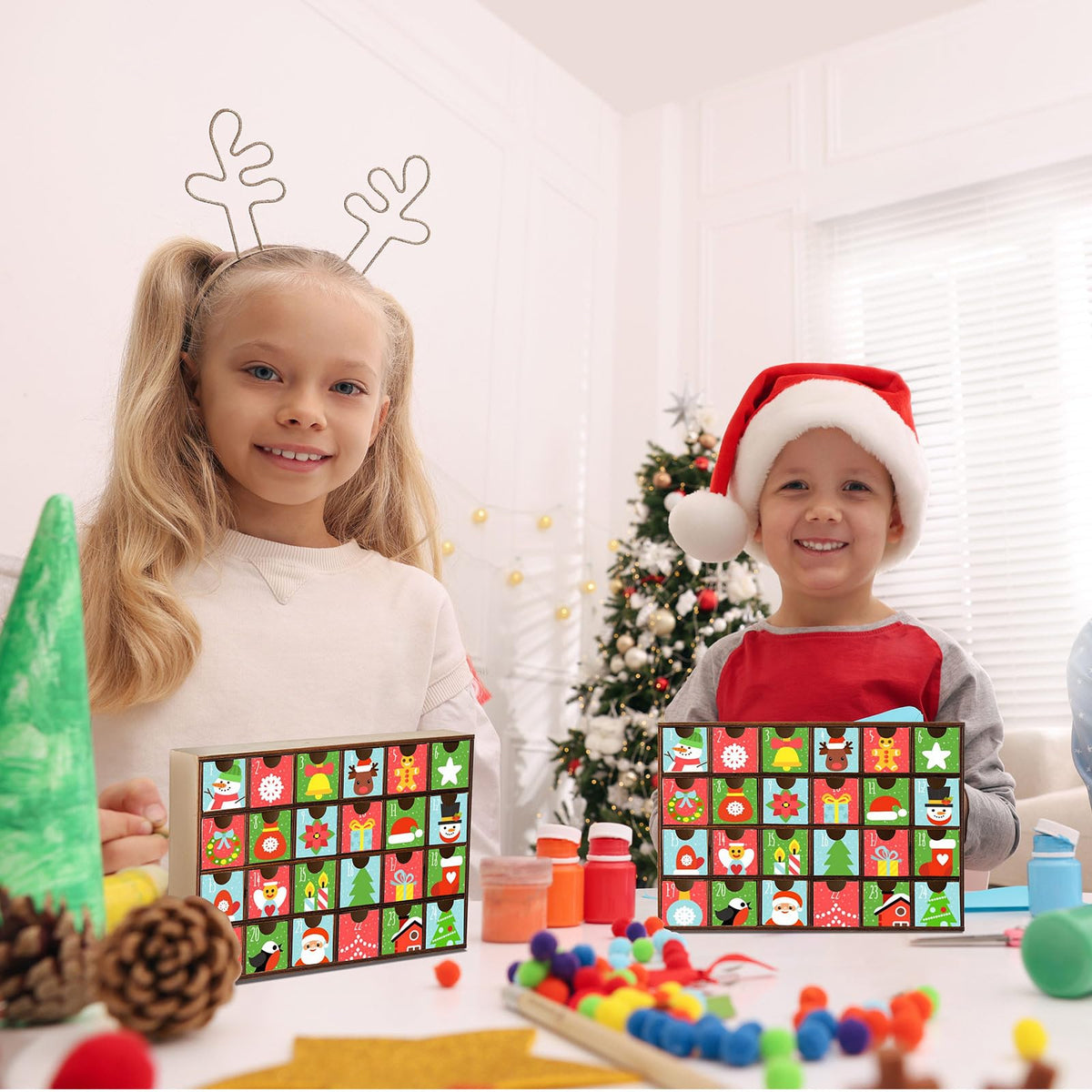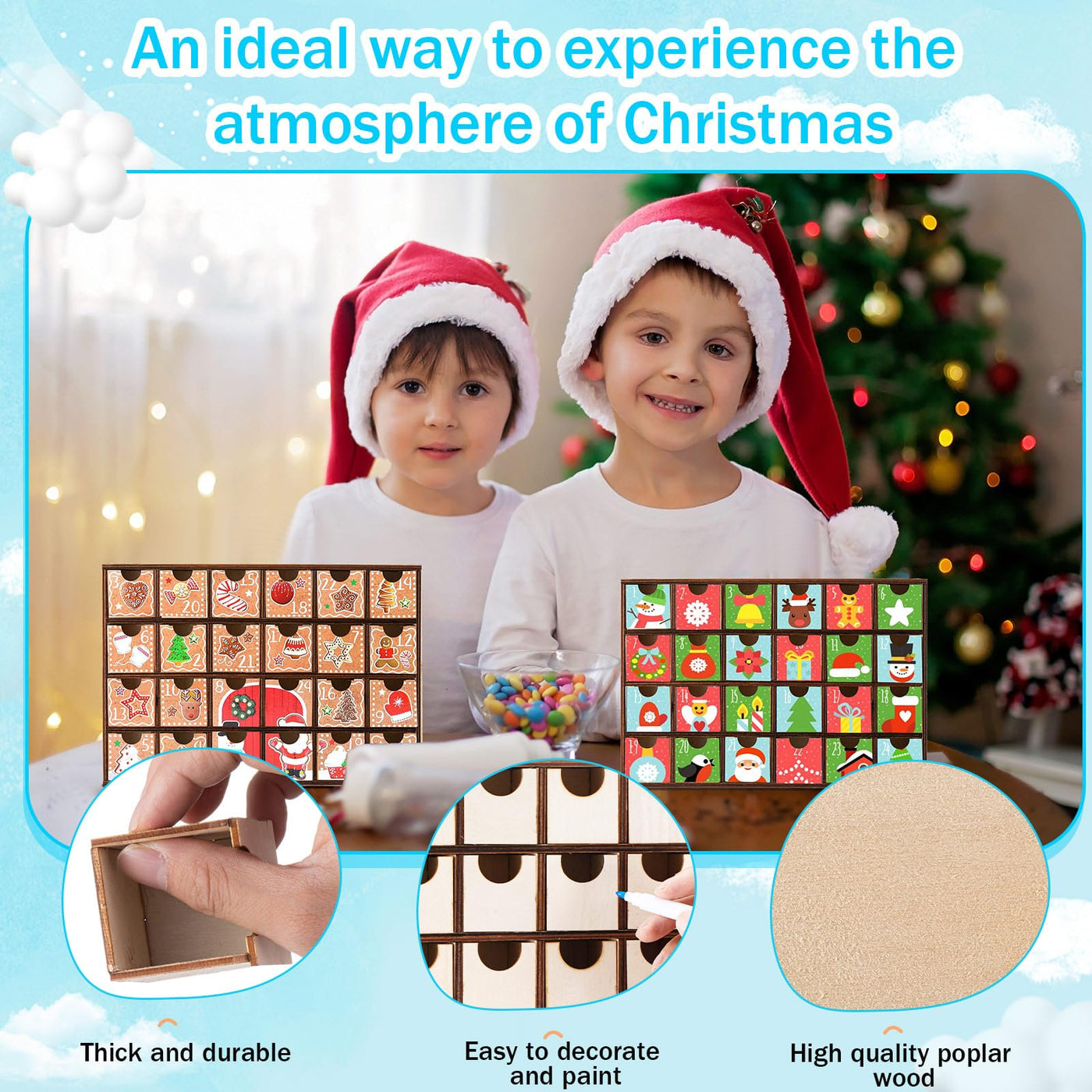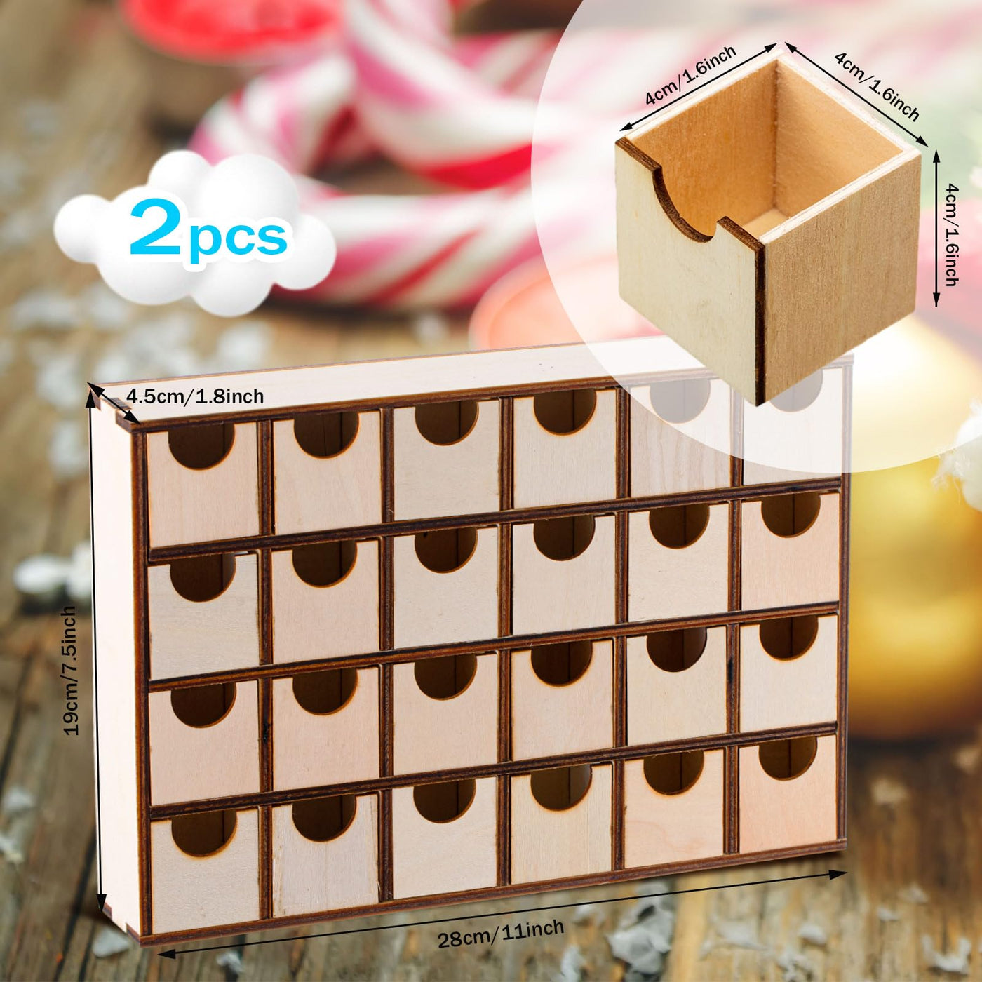 Sliner 2 Pcs Christmas Wooden Advent Calendar with 24 Drawers Countdown to Christmas Storage Organizer, DIY Unfinished Storage B