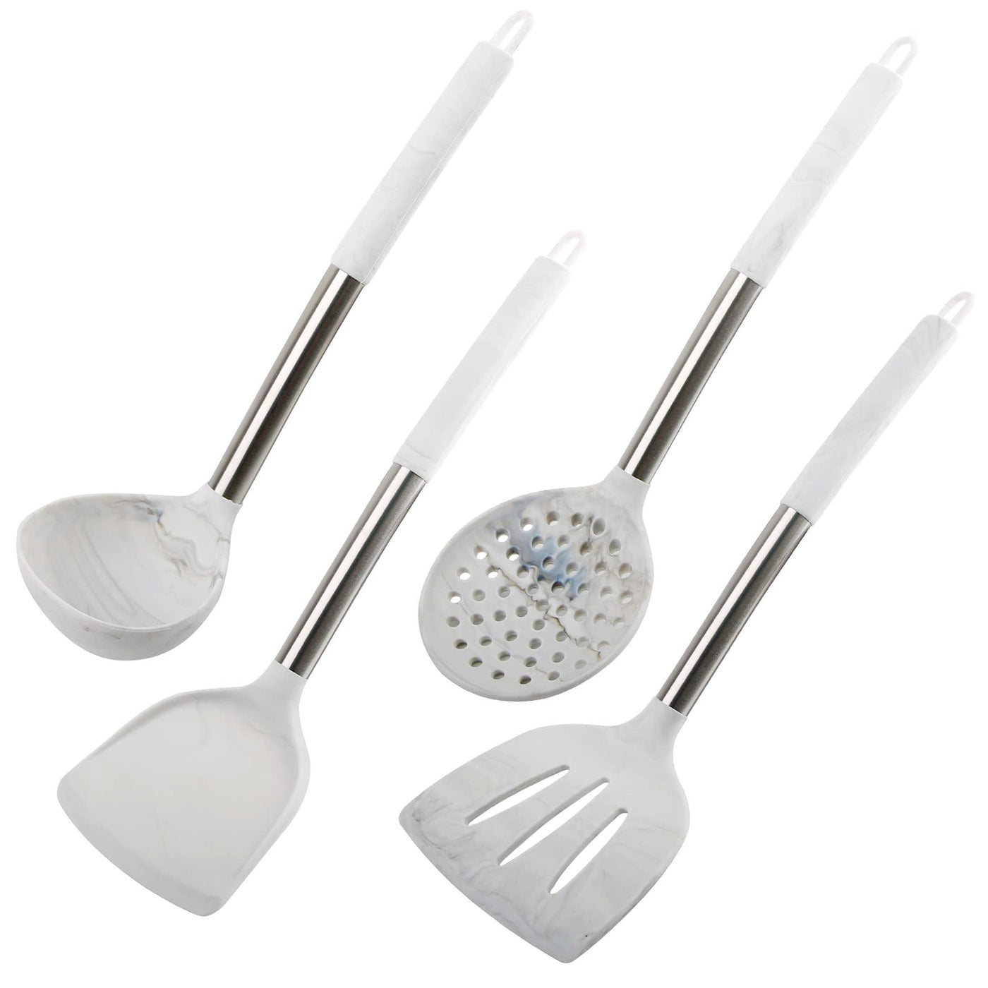4Pcs Silicone Cooking Utensils Set-Heat Resistant Kitchen Utensils With Stainless Steel Handle,Spatula,Turner, Slotted Spoon,Lad