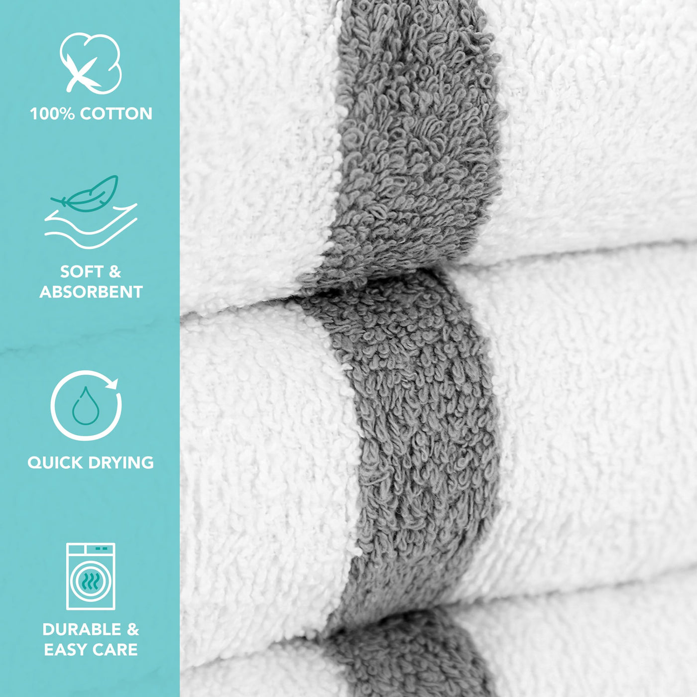 - Q: Do these towels come in different colors? A: Yes, they are available with color center stripes in blue, gold, green, beige, pink, and grey.
