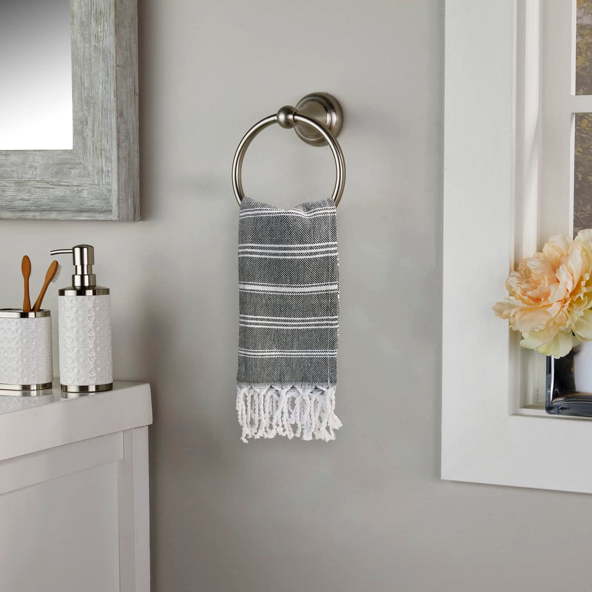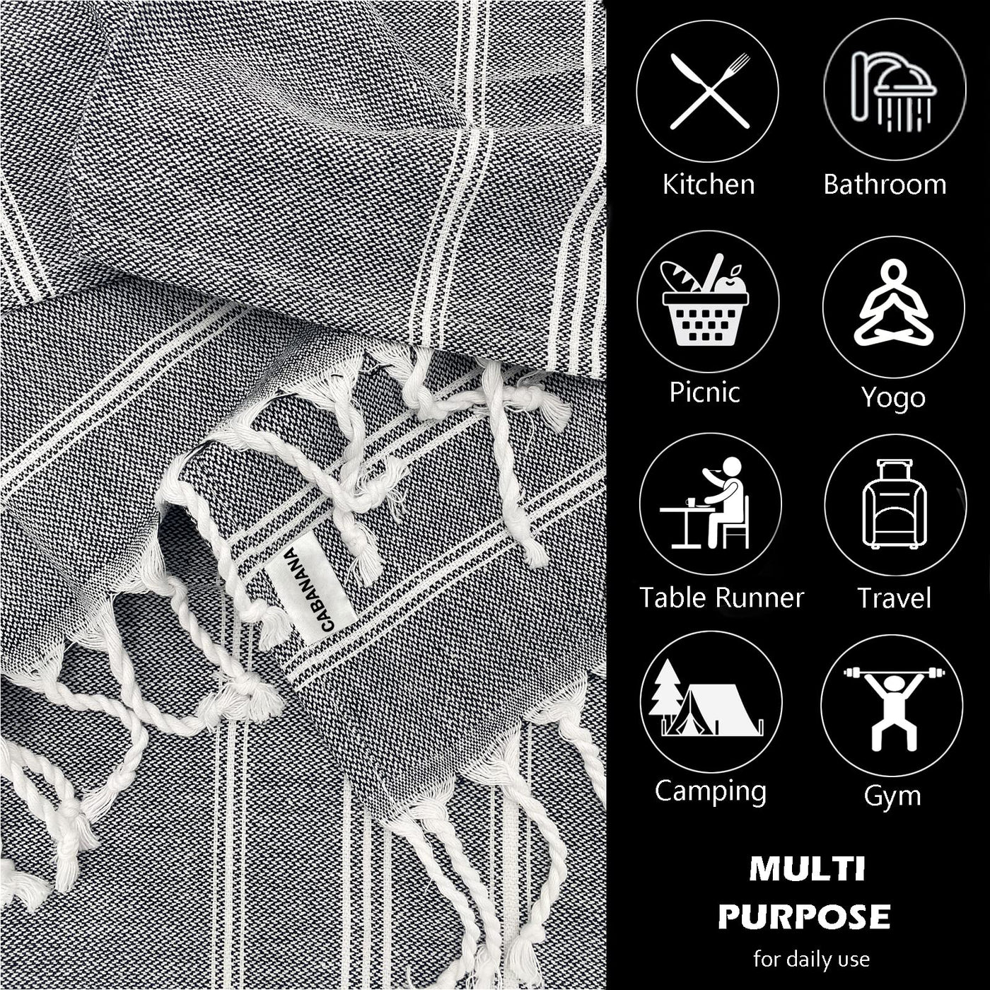 Cabanana Cotton Turkish Hand Towel - Set Of 2 | Boho Kitchen Tea Towels, 30 X 20 Inches Thin Decorative Bathroom Towel (Black)
