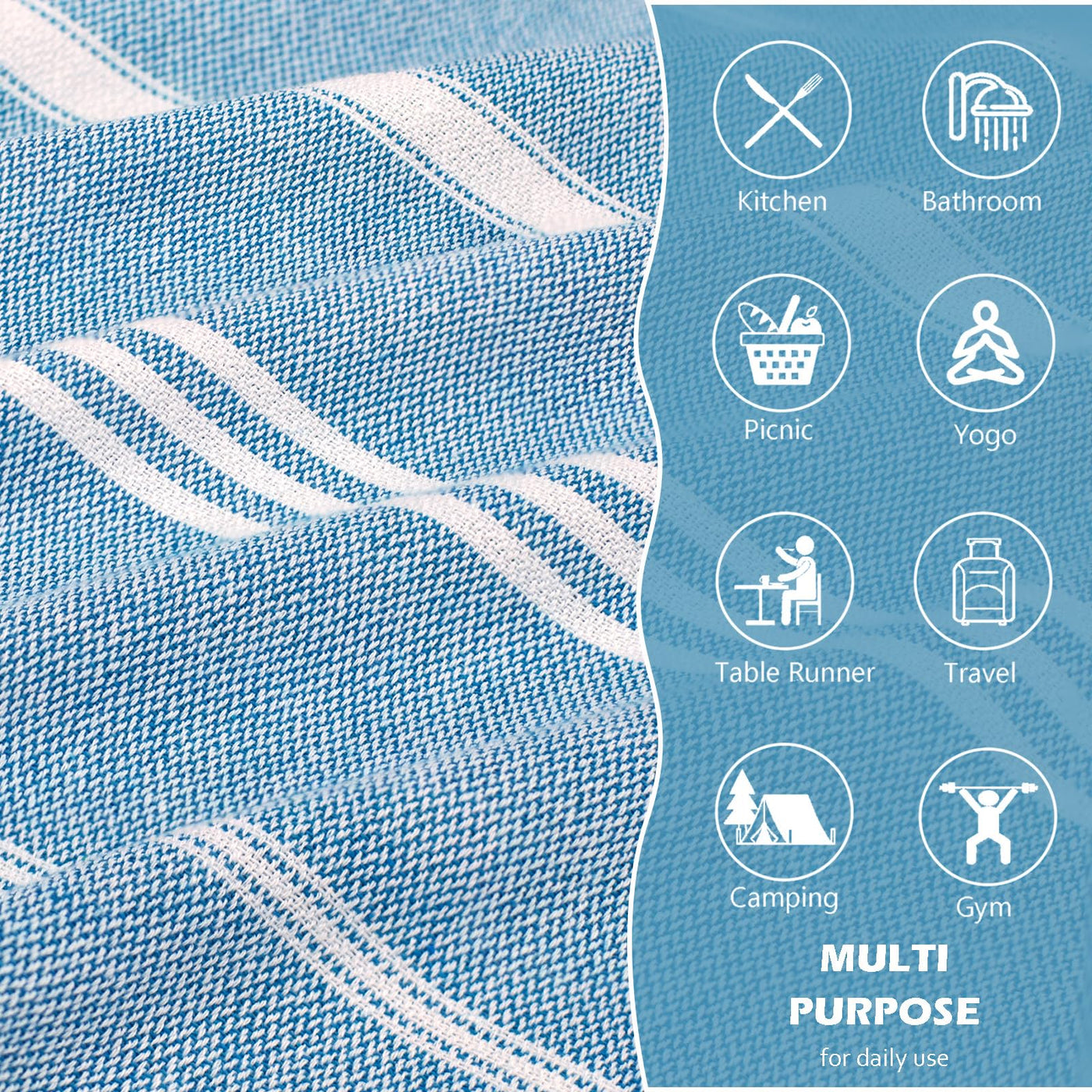 • Q: Can I use these towels for gym workouts? A: Yes, these Turkish hand towels can be used as gym towels due to their absorbent and quick-drying properties.