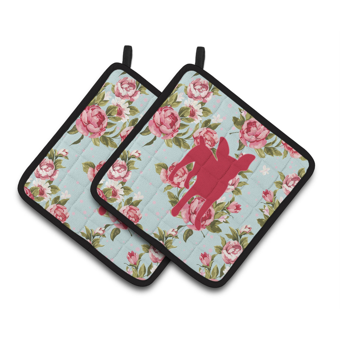 'Caroline's Treasures Chihuahua Shabby Chic Blue Roses Pair of Pot Holders BB1108-RS-BU-PTHD 7.5HX7.5W Multicolor''
