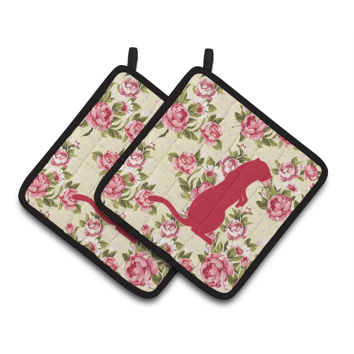 'Caroline's Treasures Meerkat Shabby Chic Yellow Roses Pair of Pot Holders BB1118-RS-YW-PTHD 7.5HX7.5W Multicolor''